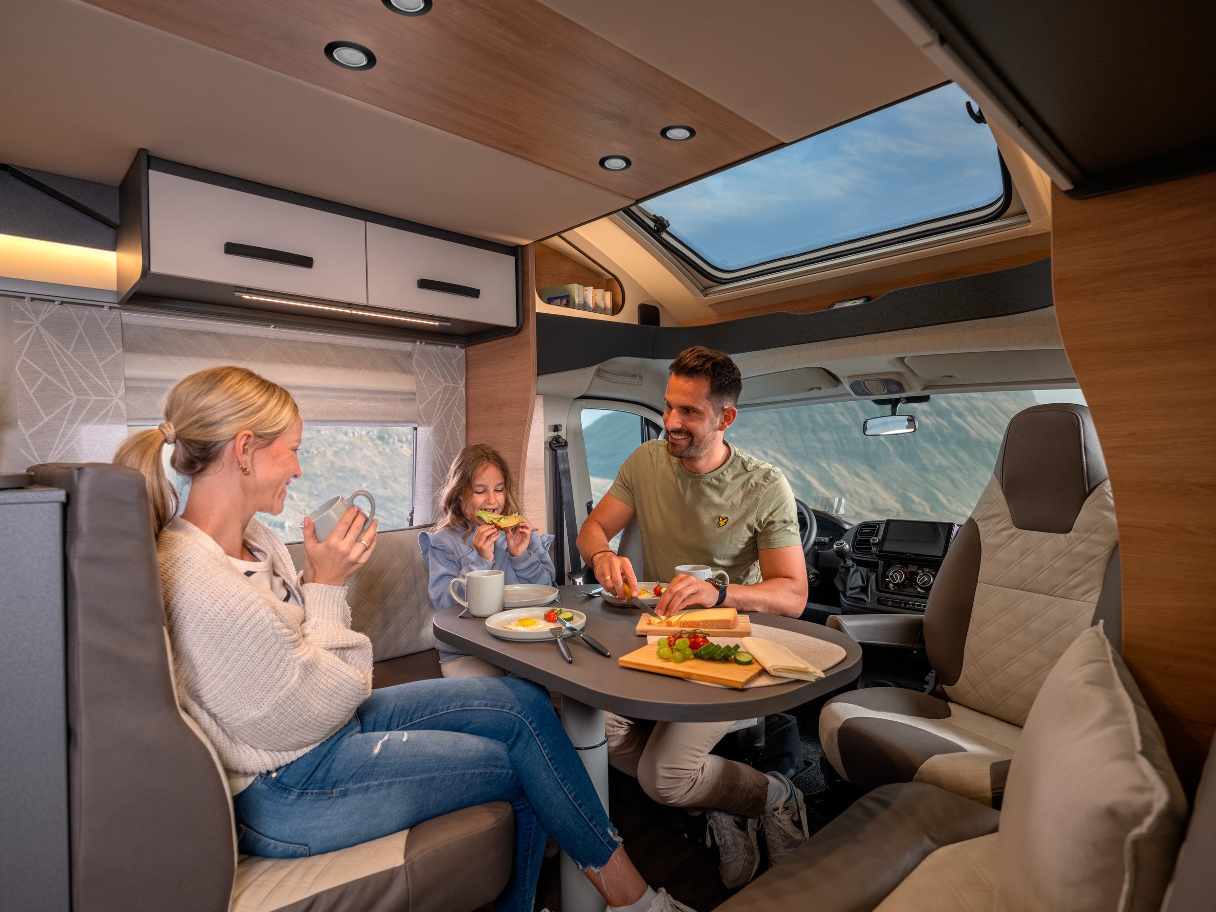 Tässä van-luokan puoli-integroidussa Knaus-asuntoautossa jokainen senttimetri on tarkkaan hyödynnetty. Lopputulos on täydellinen: pienet ulkomitat, mutta suuret sisätilat. Sisäleveyttä on vain kaksi metriä, mutta silti tilaa tavaralle ja matkustajille riittää joka suuntaan – jopa neljän hengen seurueelle. Korimallin kompaktista koosta huolimatta isoimmatkin vapaa-ajan unelmat käyvät Tourer Vansationissa toteen. Kaksi eri pohjaratkaisua antavat sinulle mahdollisuuden valita istuimien ja vuodepaikkojen asettelun.