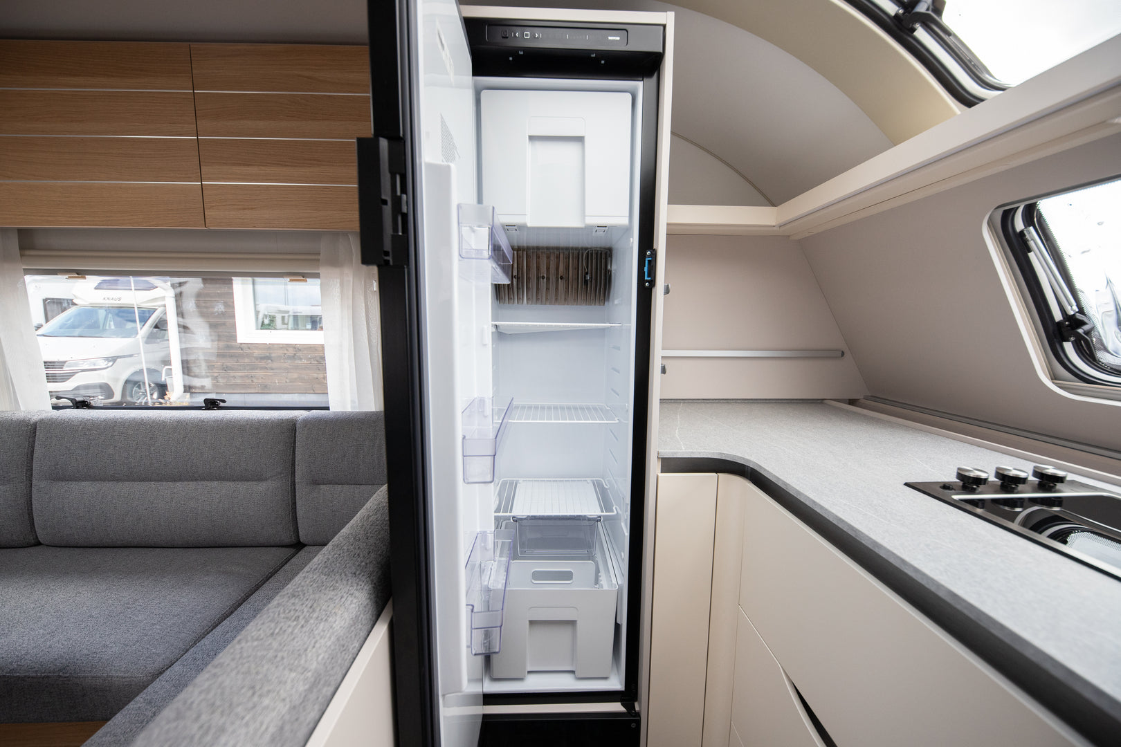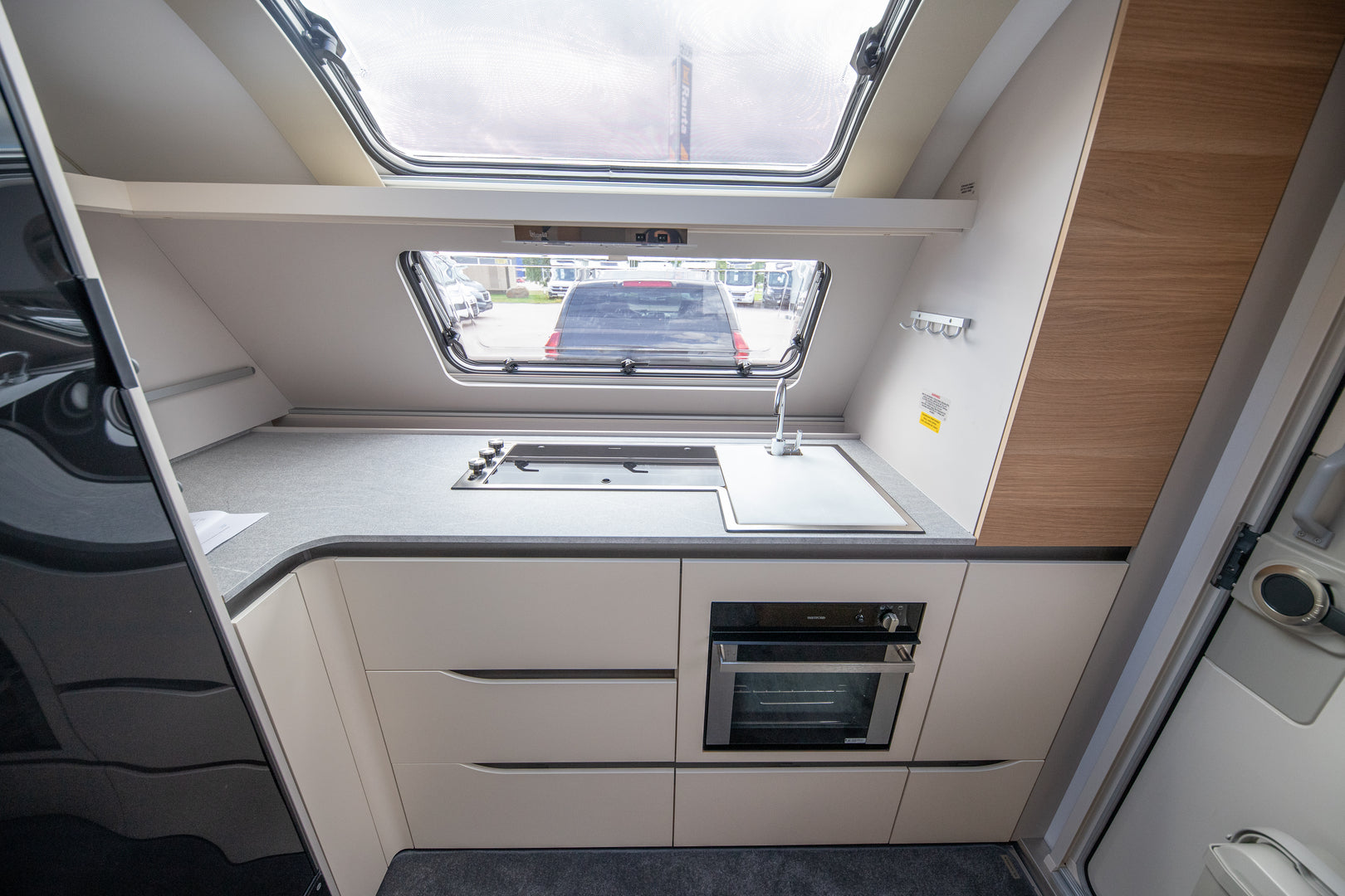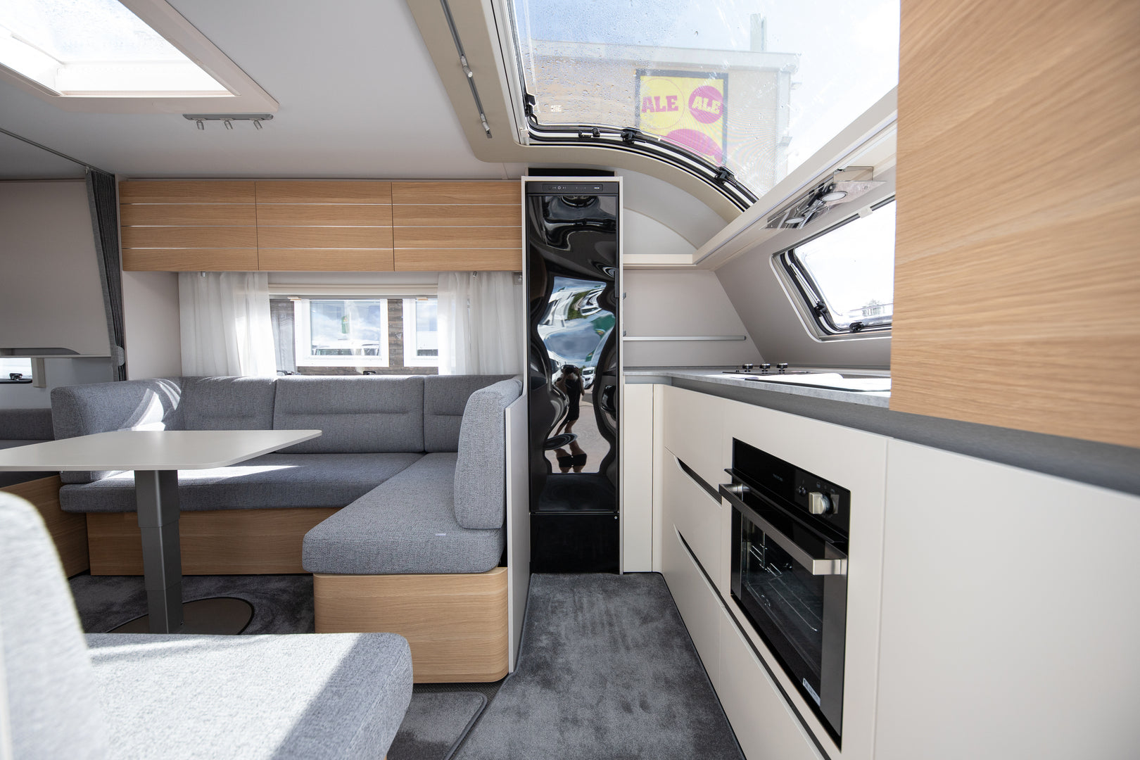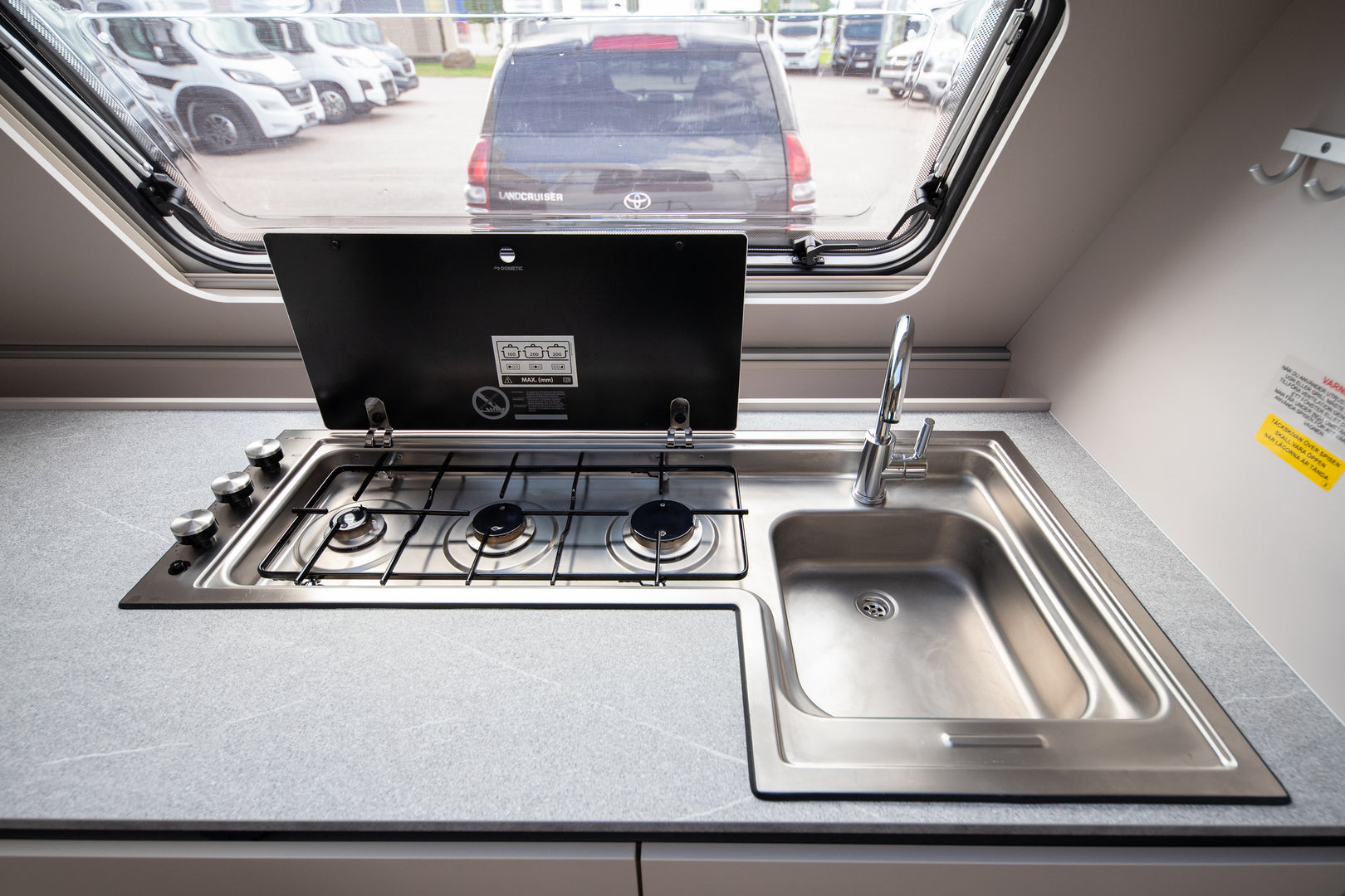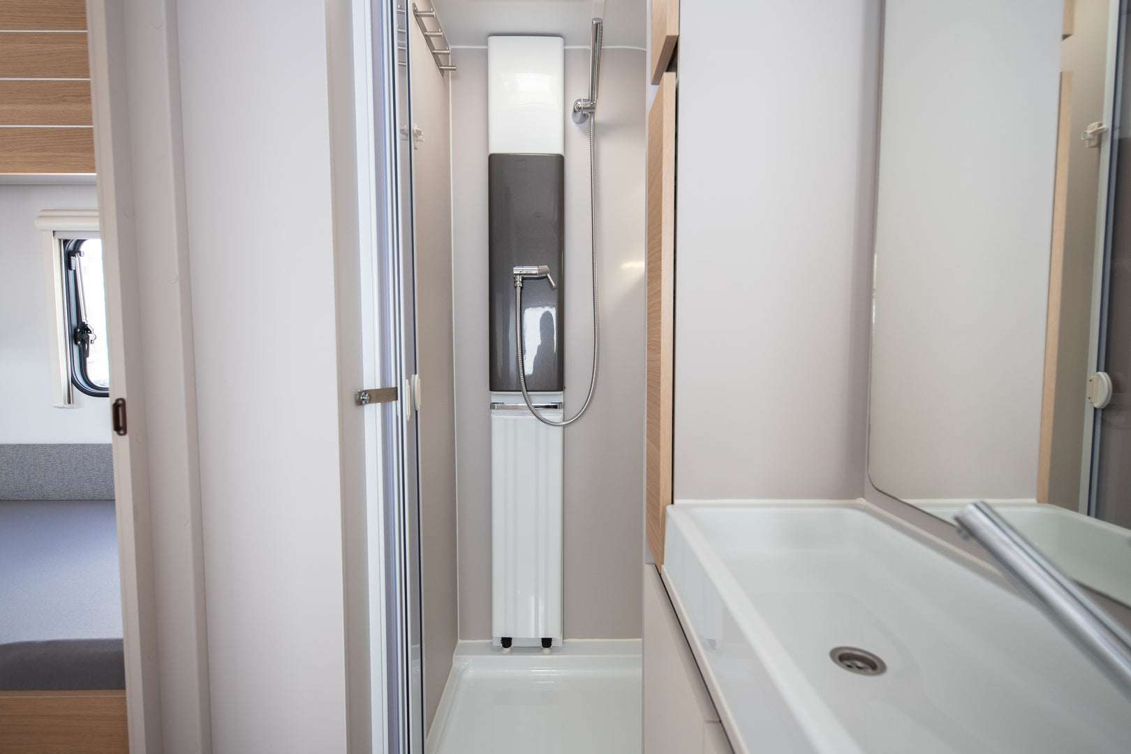 Mover-ajolaite kaukosäädöllä helpottaa vaunun siirtelyä myös ahtaissa paikoissa. Keittiössä on kaasu-uuni, joka mahdollistaa monipuolisen ruoanlaiton. Erillinen suihku lisää asumismukavuutta ja tekee matkustamisesta itsenäisempää.