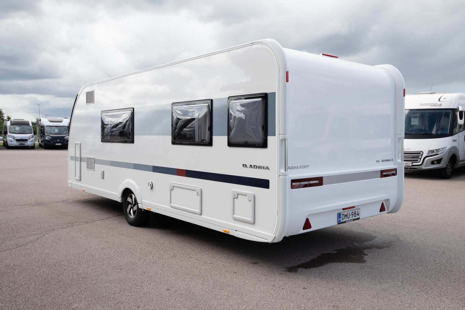 Adria Adora 613 HT tarjoaa matkailuun mukavuutta ja helppokäyttöisiä ratkaisuja. Erillisvuoteet takaavat levolliset yöunet ja tilaa liikkua sisällä. Alde-nestekiertolämmitys ja lattialämmitys pitävät vaunun lämpimänä myös kylminä vuodenaikoina, ja sähköpatruuna tuo lisämukavuutta lämmityksen käyttöön. Tiiveystakuu vuoteen 2029 asti antaa mielenrauhaa vuosiksi eteenpäin.