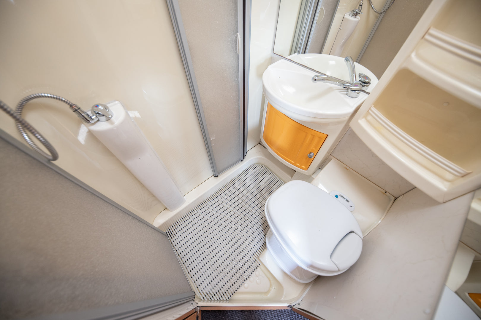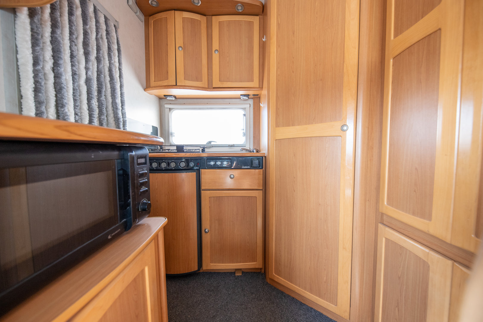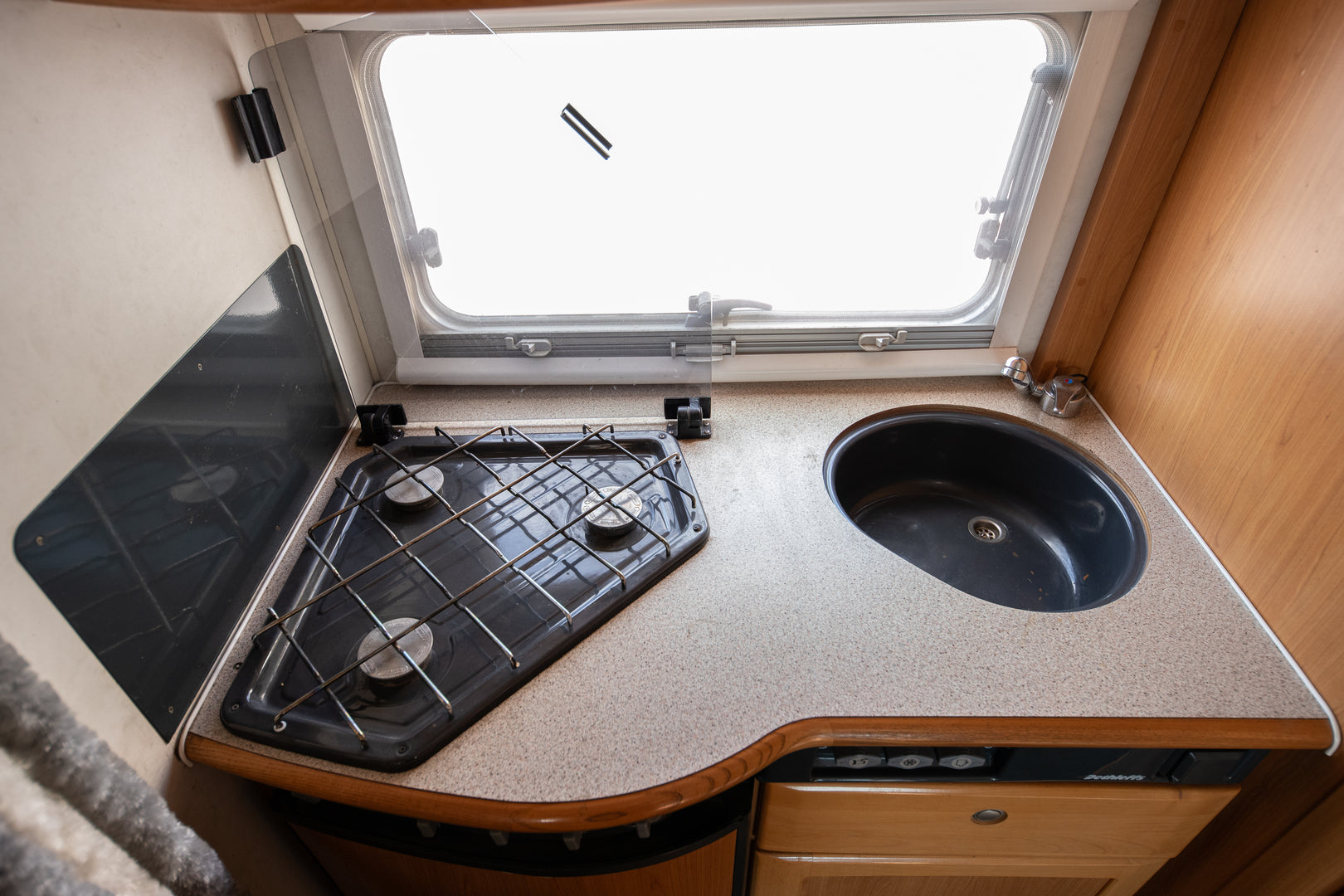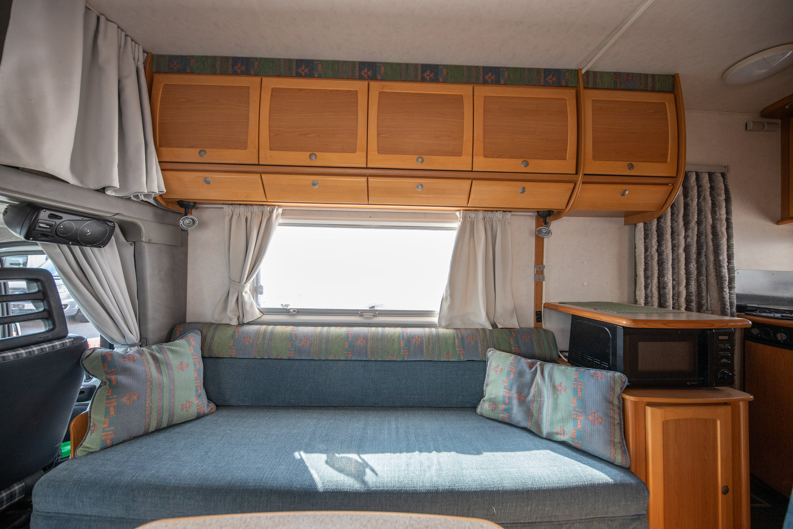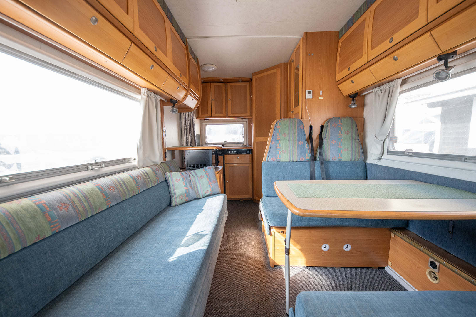 Keittiö on varustettu liedellä ja jääkaapilla, mikä tekee ruoanlaitosta helppoa myös matkan aikana. Kasetti-WC ja pesuallas tuovat lisää mukavuutta reissussa, ja stereot tarjoavat viihdettä matkapäivien lomassa.