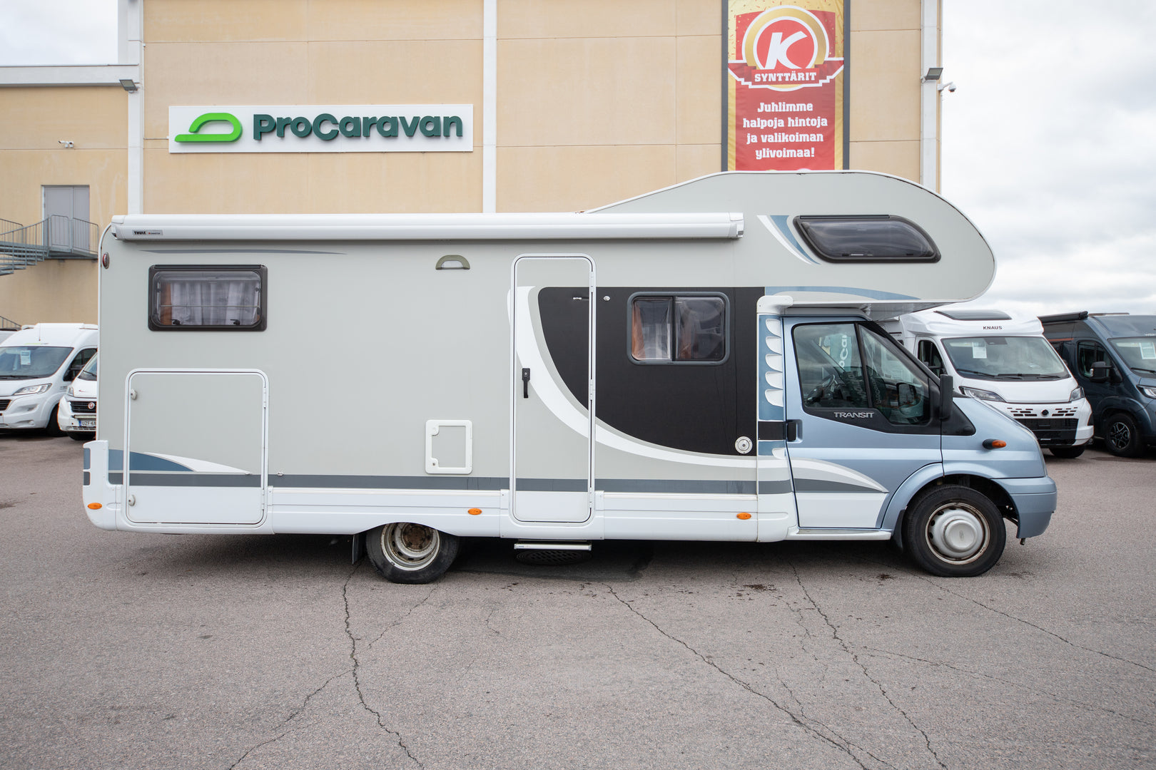 Dethleffs Fortero A 6975 on suunniteltu perheille ja matkailijoille, jotka arvostavat sekä ajomukavuutta että viihtyisiä sisätiloja. Ford-alusta ja 2.4-litrainen 140 hevosvoiman moottori tarjoavat tasaisen ajokokemuksen, ja manuaalivaihteisto sekä ohjaustehostin tekevät liikkumisesta vaivatonta. Ilmastointi ajotilassa sekä vakionopeudensäädin tuovat mukavuutta myös pidemmillä matkoilla.