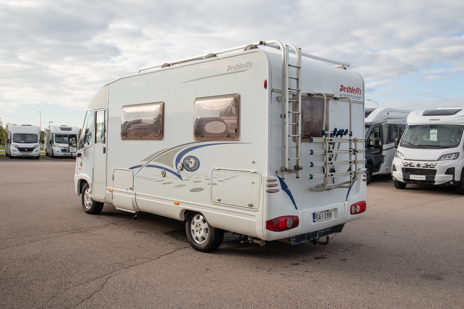 Dethleffs I 5841 tarjoaa mutkatonta matkustamista ja asumisen mukavuutta järkevän kokoisessa paketissa. Fiatin 2.8 litran moottori ja 130 hevosvoimaa takaavat luotettavan ajokokemuksen, jonka kruunaa ajotilan ilmastointi. Kompakti ulkomuoto tekee ajoneuvosta ketterän liikenteessä ja helpottaa pysäköintiä kohteessa.