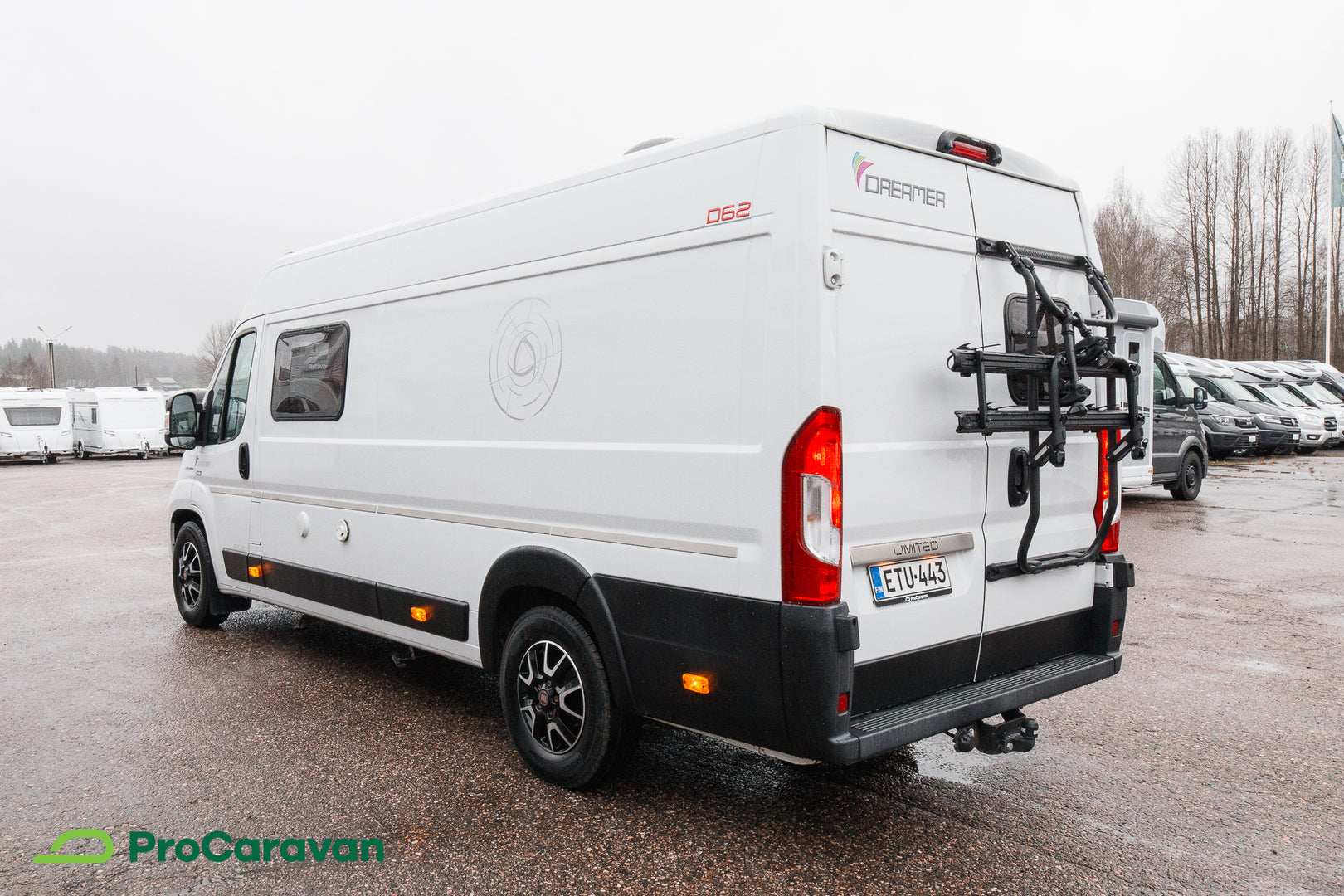 Dreamer D62 540 tarjoaa ketteryyttä ja ajomukavuutta kompaktissa koossa. Automaattivaihteisto yhdessä tehokkaan Fiatin 160 hevosvoiman moottorin kanssa tekee ajamisesta vaivatonta myös kaupunkiliikenteessä ja kapeilla teillä. Lisäilmajouset takana tasapainottavat ajokokemusta entisestään ja tekevät matkasta miellyttävän myös kuormattuna. Pysäköintikamera helpottaa ahtaisiin paikkoihin peruuttamista ja vetokoukku lisää käyttömukavuutta erityisesti harrastuksia ajatellen.