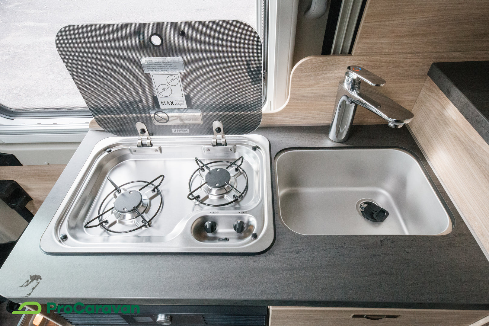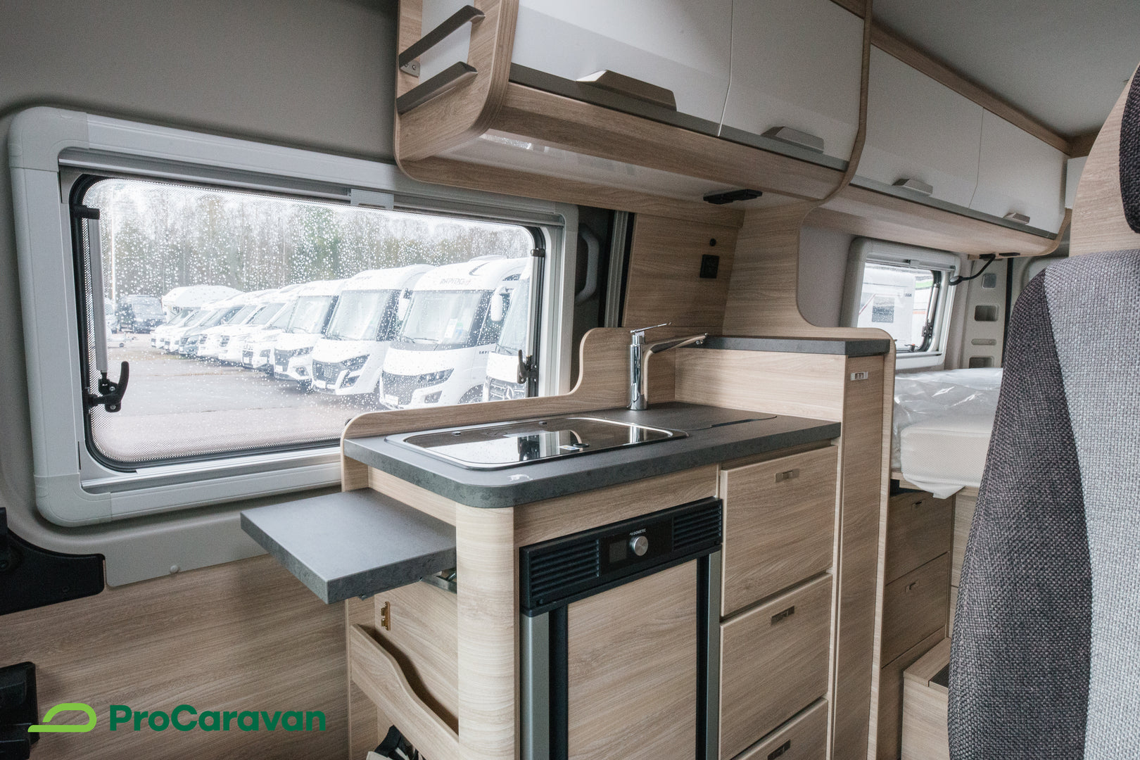 Kompaktista ulkomitasta huolimatta BOXSTAR 600 LIFETIME kätkee sisäänsä runsaasti toimivia ratkaisuja. Keittiössä on 2-liekkinen liesi, lasikansi ja erillinen pesuallas sekä hiljaisella toiminnolla varustettu 70 litran jääkaappi. Täysin ulosvedettävät laatikot ja pehmeä sulkeminen lisäävät käytön sujuvuutta. Vesijärjestelmässä on 102 litran raikasvesisäiliö ja 90 litran harmaavesisäiliö, jotka mahdollistavat itsenäisen matkailun ilman jatkuvaa huoltotarvetta.