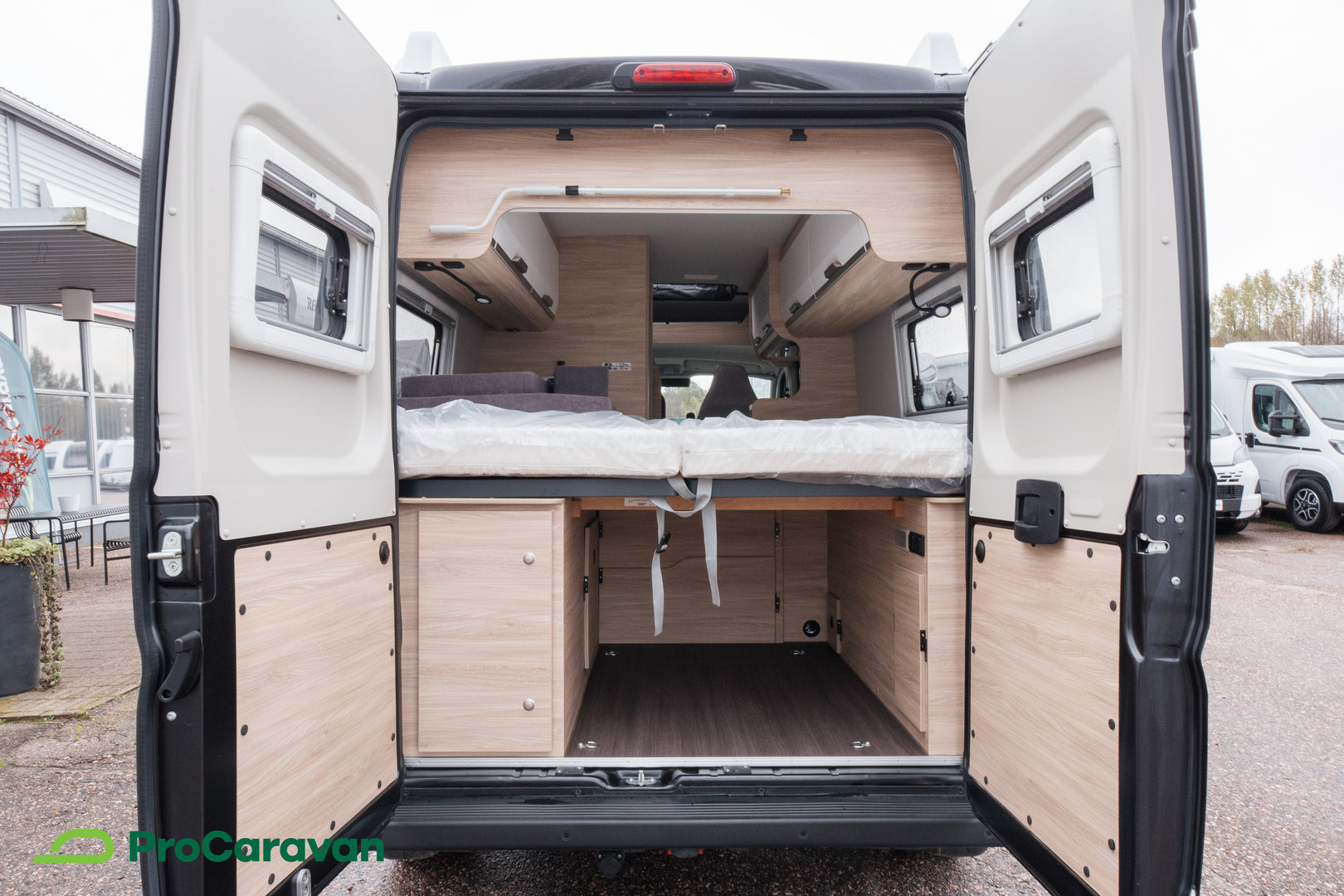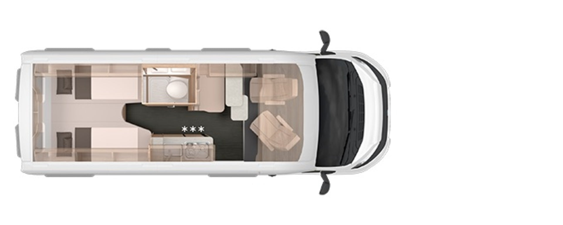 Sisätiloissa yhdistyvät toimivuus ja mukavuus. Pitkittäiset erillisvuoteet takaosassa tarjoavat erinomaiset nukkumapaikat, ja istuinryhmän voi muuntaa lisävuoteeksi. Truma Combi 6D+E -lämmitys sekä lämmitetty välipohja pitävät lämpötilan miellyttävänä myös kylminä kuukausina. Yhdessä sähköisen lattialämmityksen kanssa tämä retkeilyauto on valmis ympärivuotiseen käyttöön. Kattava varustelu sisältää myös suihkun ilmarenkaallisella suihkuverholla, kääntyvän kasetti-wc:n ja LED-valaistuksen.