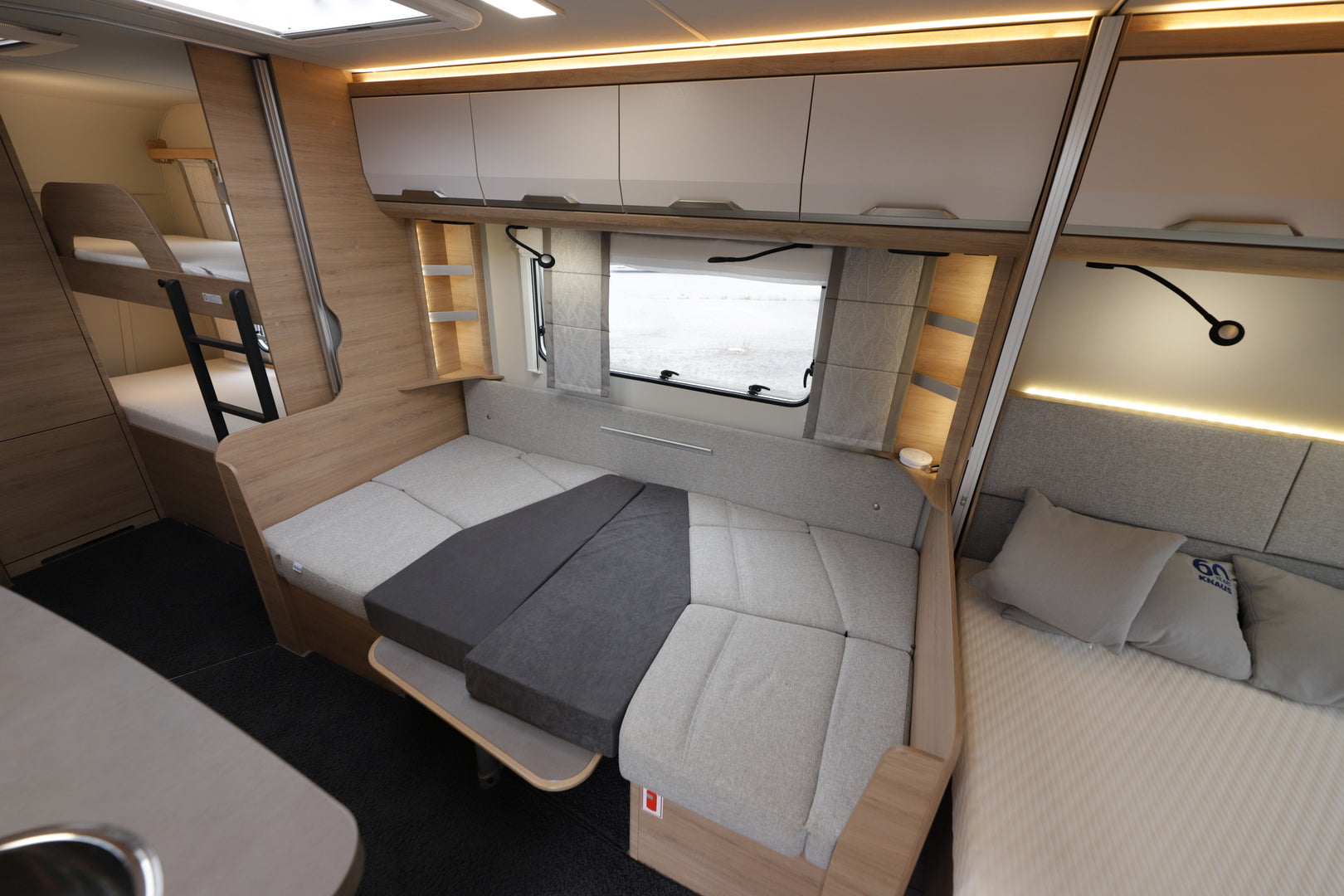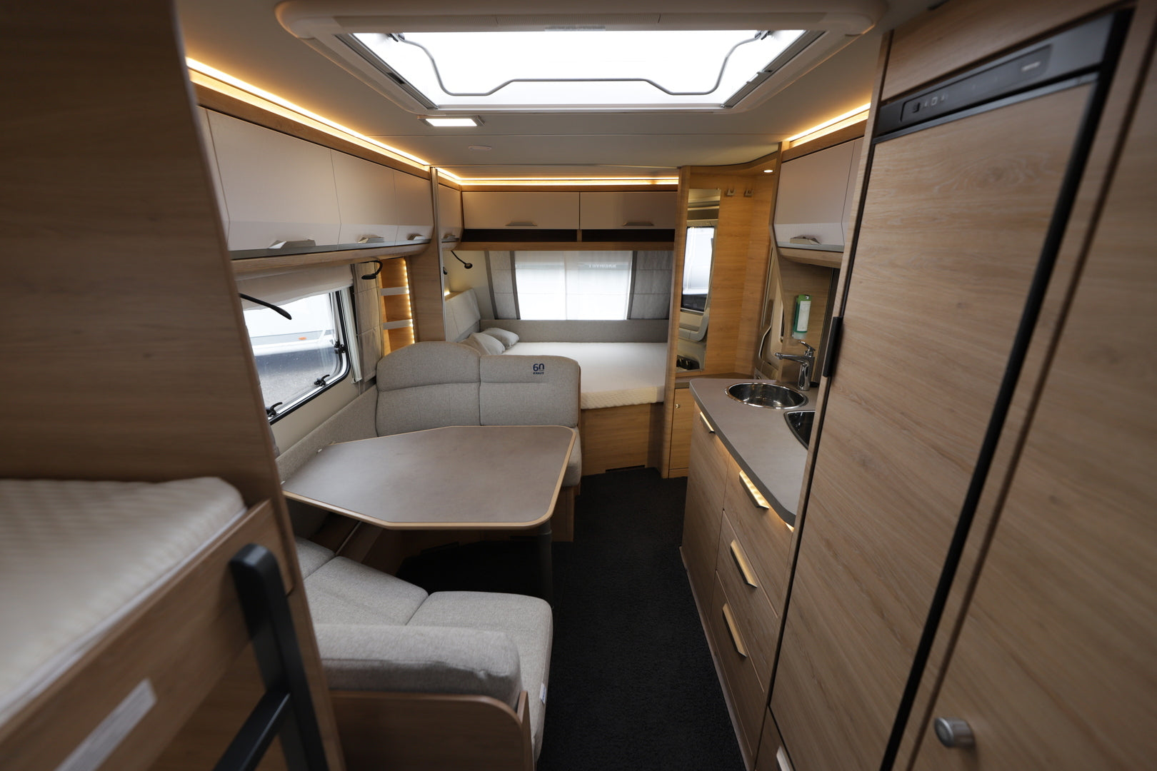 Knaus Südwind 580 QS 60 YEARS on tilava ja huolella suunniteltu matkailuvaunu, joka sopii erinomaisesti perheen yhteisiin lomahetkiin. Pohjaratkaisu tarjoaa neljälle kiinteät nukkumapaikat: vaunusta löytyy sekä parivuode että kerrosvuode, ja lisävuode saadaan tarvittaessa pöytäryhmästä. Tunnelmavalaistus ja nestekiertoinen lattialämmitys viimeistelevät miellyttävän sisäilmeen vuoden ympäri. Alde-lämmitysjärjestelmä yhdessä sähköpatruunan kanssa pitää tilat lämpiminä myös kylmemmillä keleillä.