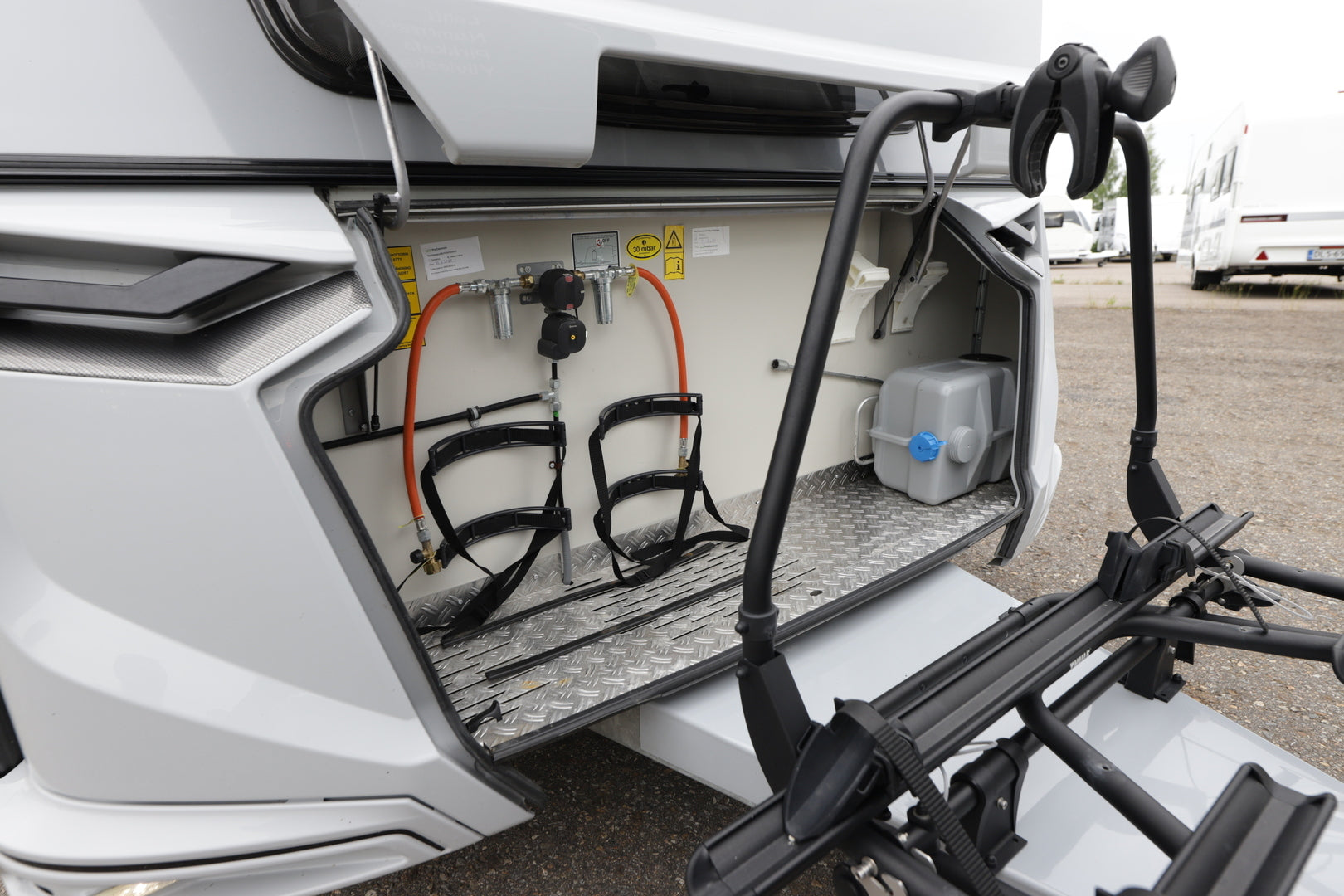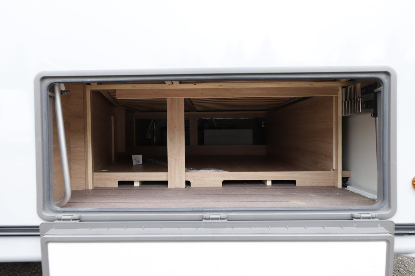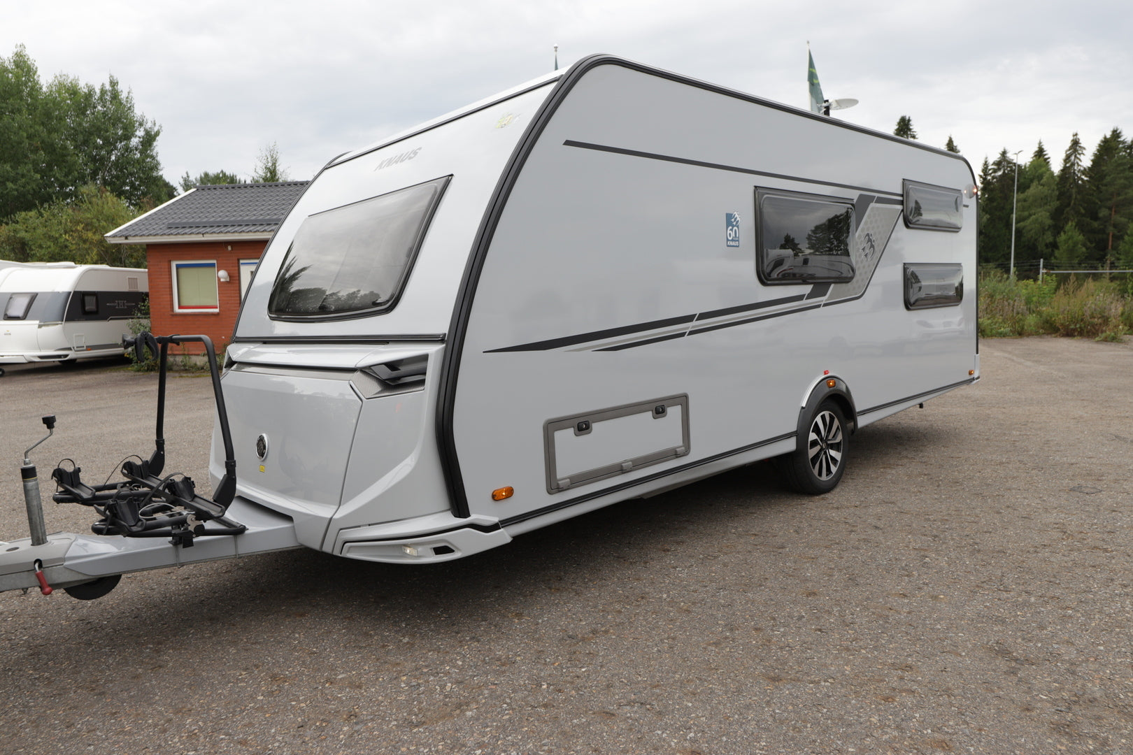 Ulkoiluun ja retkeilyyn suunnatut varusteet, kuten markiisi, pyöräteline ja kaasun ulosotto, tekevät vaunusta mainion tukikohdan kaikenlaiseen lomailuun. Alumiinivanteet, tukijalat ja mattosarja viimeistelevät ulkoasun ja käyttömukavuuden.
