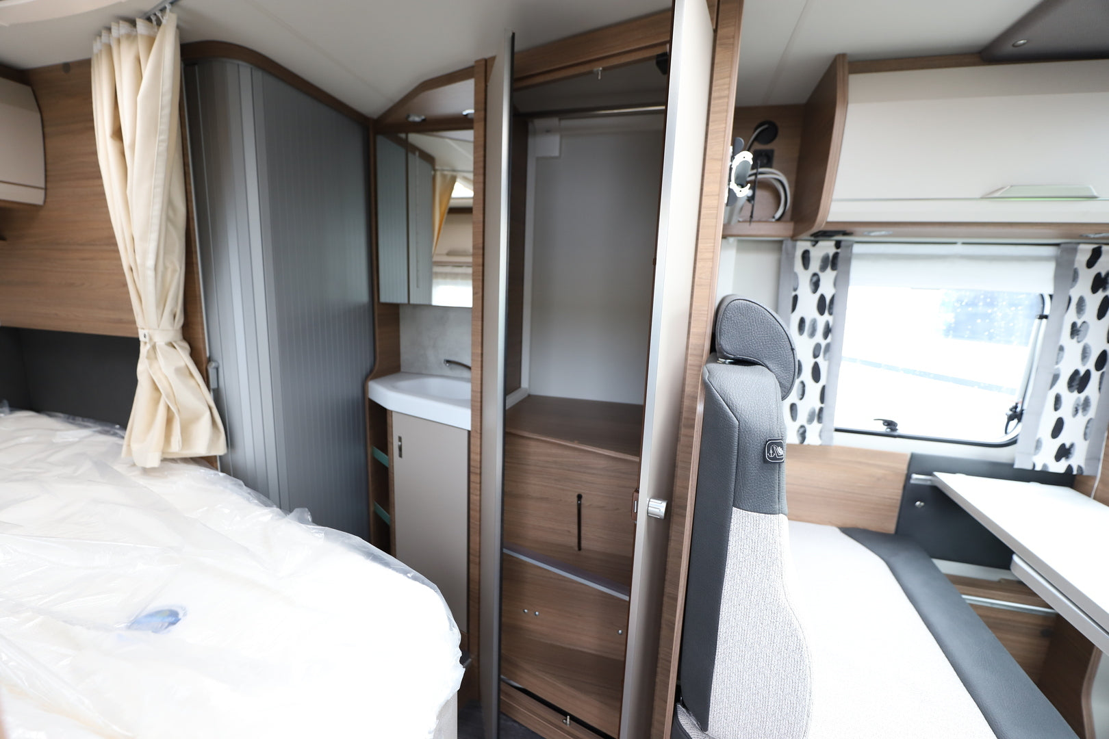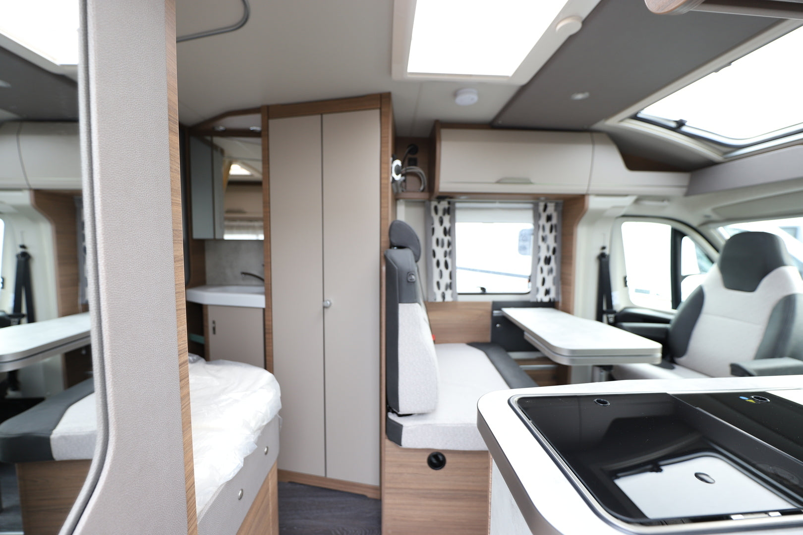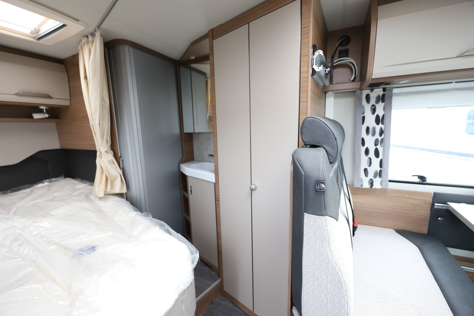 Ohjaamon kapteeni-istuimet, WINTER WHITE -verhoilu ja puujäljitelmävinylilattia muodostavat yhtenäisen, laadukkaan tunnelman. Ranskalainen vuode takaa levollisen levon ja mahdollistaa tehokkaan tilankäytön kompaktissa pohjaratkaisussa.