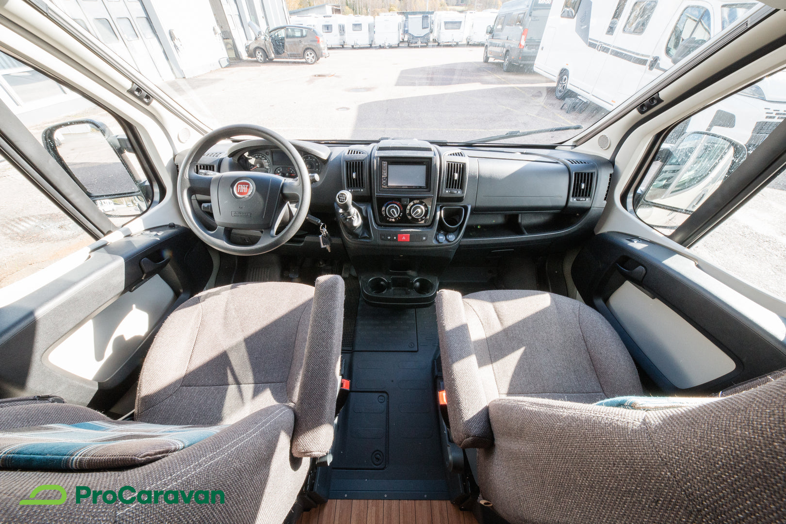 Pössl Road Camp yhdistää ajamisen nautinnon ja matkailun vapauden 5,4 metrin pituisessa kokonaisuudessa. Tehokas 148 hevosvoiman Fiatin moottori tarjoaa luotettavaa suorituskykyä niin kaupungissa kuin maantiellä. Manuaalivaihteisto, ohjaustehostin ja ajotietokone tekevät ajamisesta sujuvaa, ja vakionopeudensäädin sekä manuaalinen ilmastointi ajotilassa lisäävät ajomukavuutta pitkienkin matkojen aikana. Pysäköintikamera helpottaa liikkumista ahtaissa paikoissa.