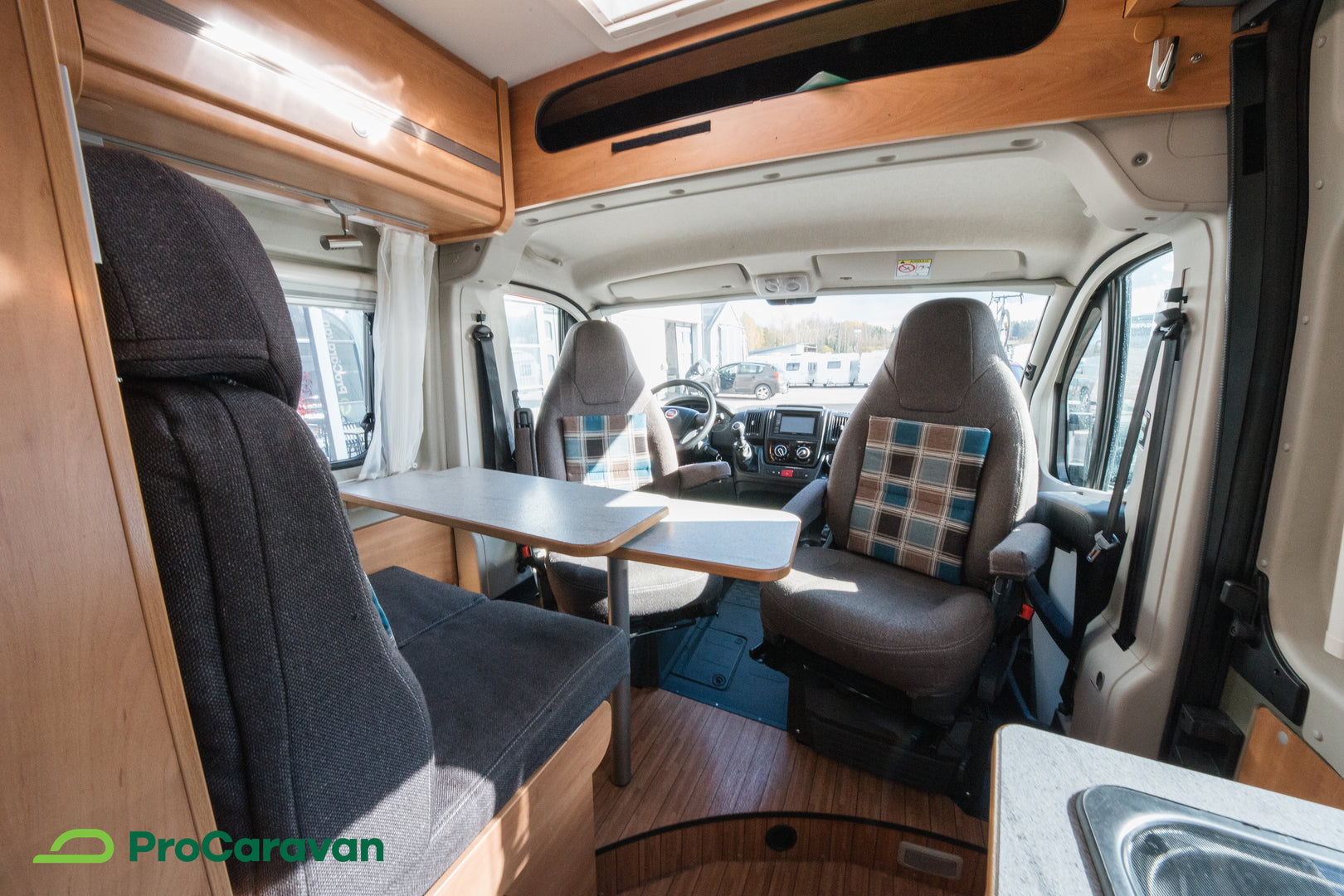 Lämminvesivaraaja ja Truma-ilmakeskuslämmitys takaavat miellyttävän lämpötilan kaikkina vuodenaikoina. Asumismukavuutta lisäävät kattoikkuna, hyttysverkko-ovi ja kasettiverhot, jotka päästävät valon sisään, mutta pitävät ei-toivotut vieraat ulkona.