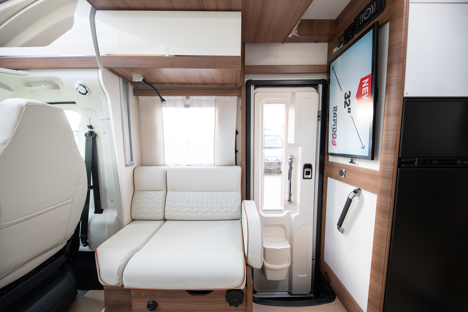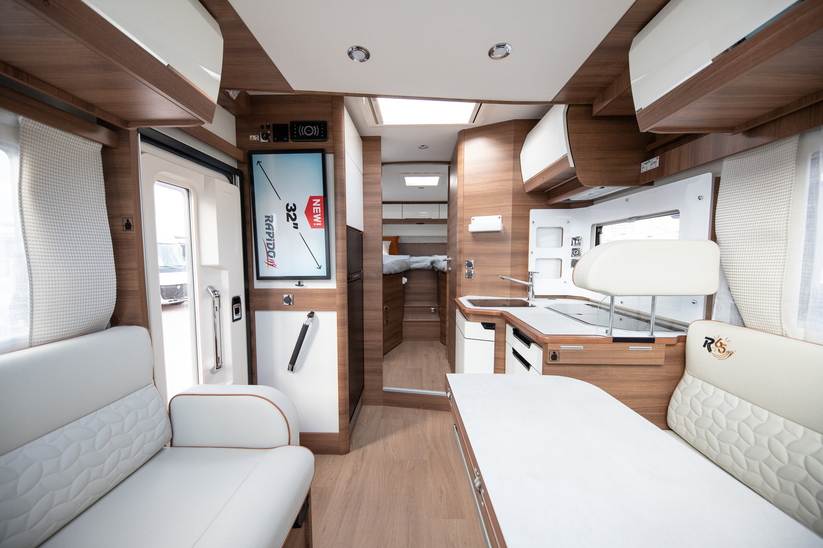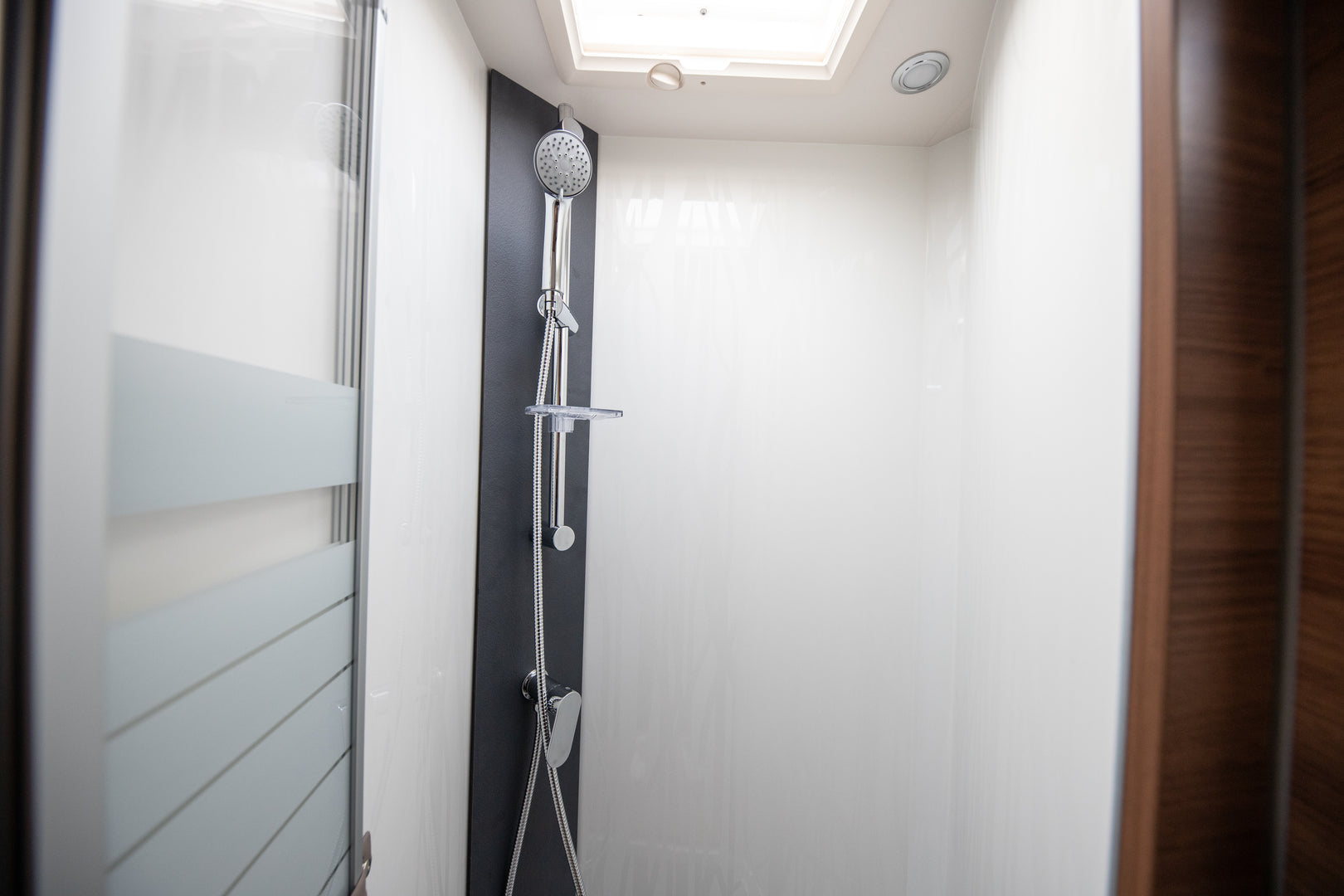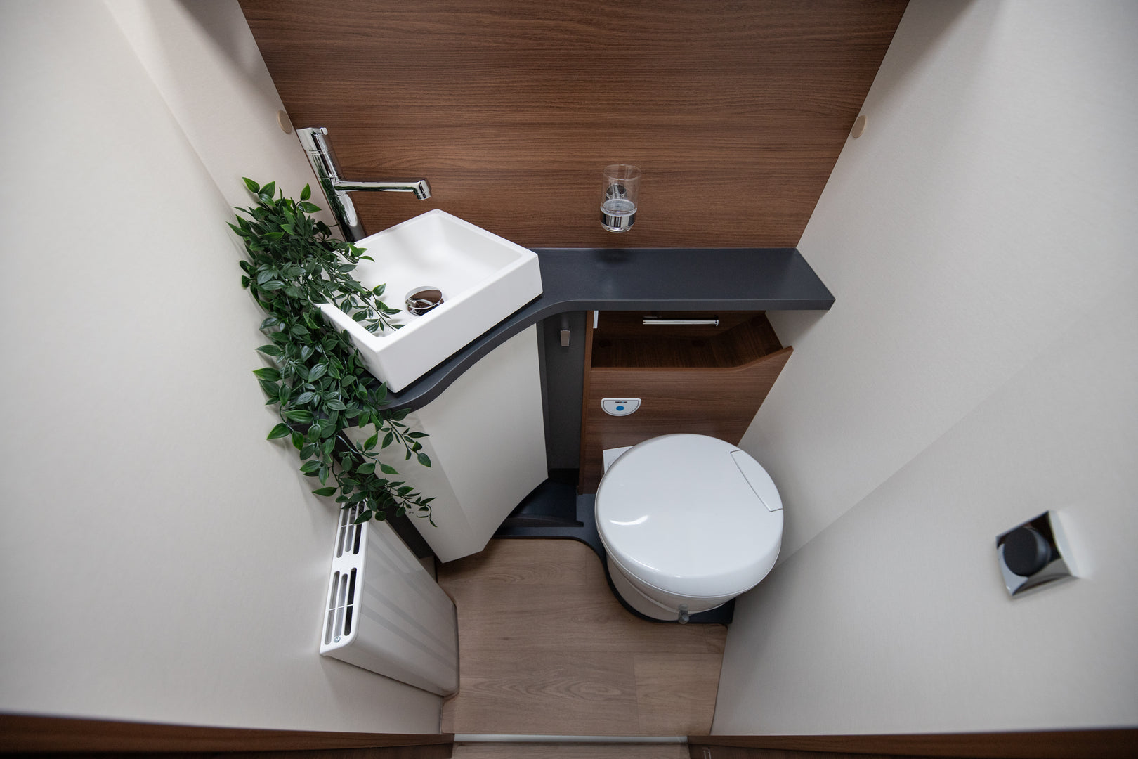 Keskelle sijoitettu XXL-kylpyhuone erillisellä suihkutilalla ja modernilla sisustuksella tekee matkailusta vaivatonta. Keittiö on varustettu L-mallisella ratkaisulla, ruostumattomasta teräksestä valmistetulla altaalla ja liesituulettimella, joten ruoanlaitto onnistuu helposti matkan päällä. Tilava pöytäryhmä toimii viihtyisänä oleskelutilana ja muuntuu tarvittaessa lisävuoteeksi.