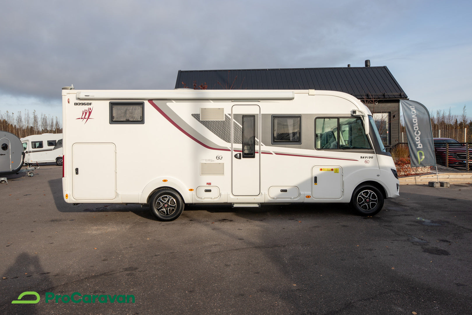 Rapido 8096DF yhdistää matkustusmukavuuden ja asumisen vaivattomuuden poikkeuksellisen tyylikkäällä tavalla. 60-Edition -varustelun yksityiskohdat, automaattivaihteisto ja tehokas 160 hevosvoiman moottori tekevät ajosta sulavaa kaikissa olosuhteissa. Ohjaamon ilmastointi, kääntyvät istuimet ja ajotietokone viimeistelevät kuljettajan mukavuuden, kun taas vakionopeudensäädin ja peruutuskamera tukevat sujuvaa liikkumista myös kaupungeissa.