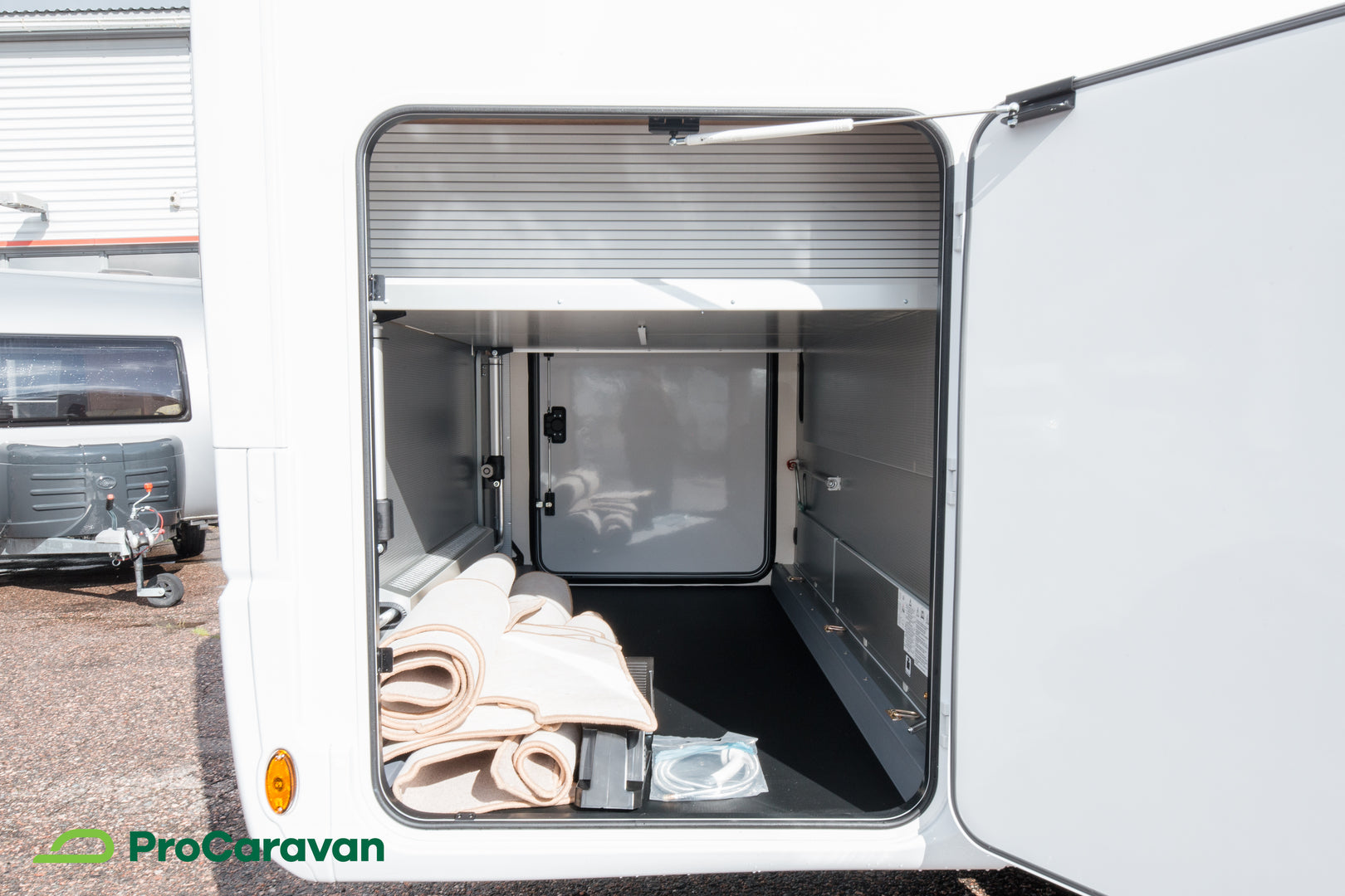 Oleskelutilat on suunniteltu viihtyisyyttä silmällä pitäen. Tilava pöytäryhmä, epäsuora tunnelmavalaistus sekä korkealaatuiset TEP-istuinverhoilut kutsuvat rentoutumaan pitkän ajopäivän jälkeen. Keskellä sijaitseva XXL-kokoinen kylpyhuone ja erillinen suihkutila mahdollistavat mukavan arjen matkalla. Käytännöllinen tuplapohja ja suuret säilytystilat takaavat riittävästi tilaa kaikelle tarpeelliselle.