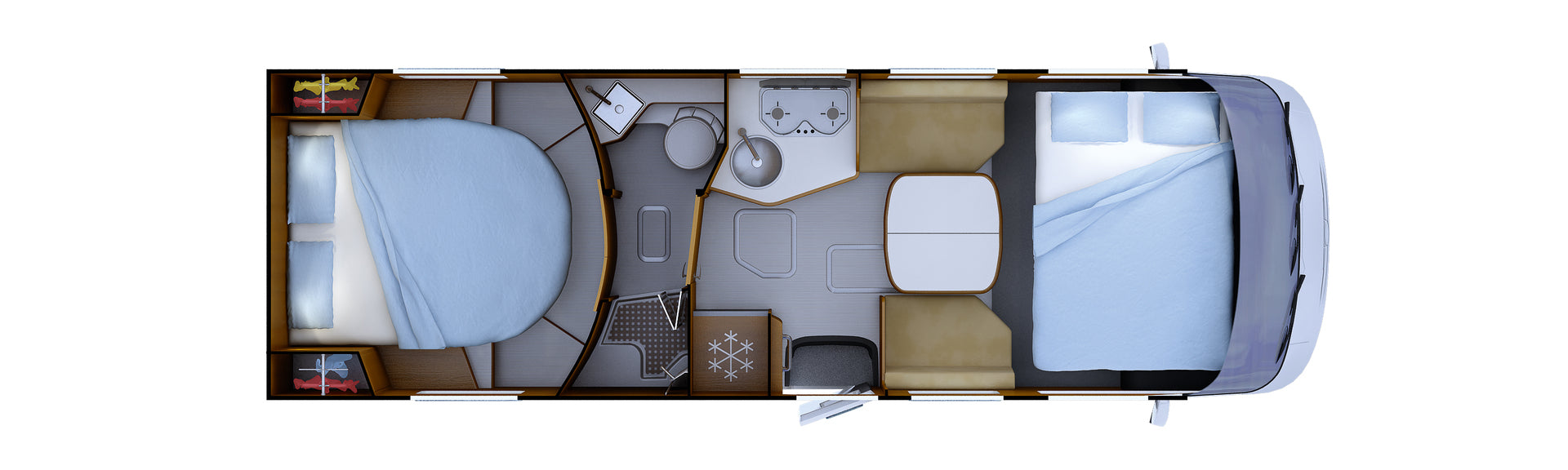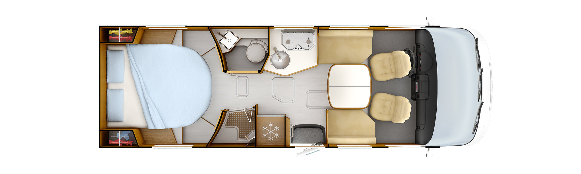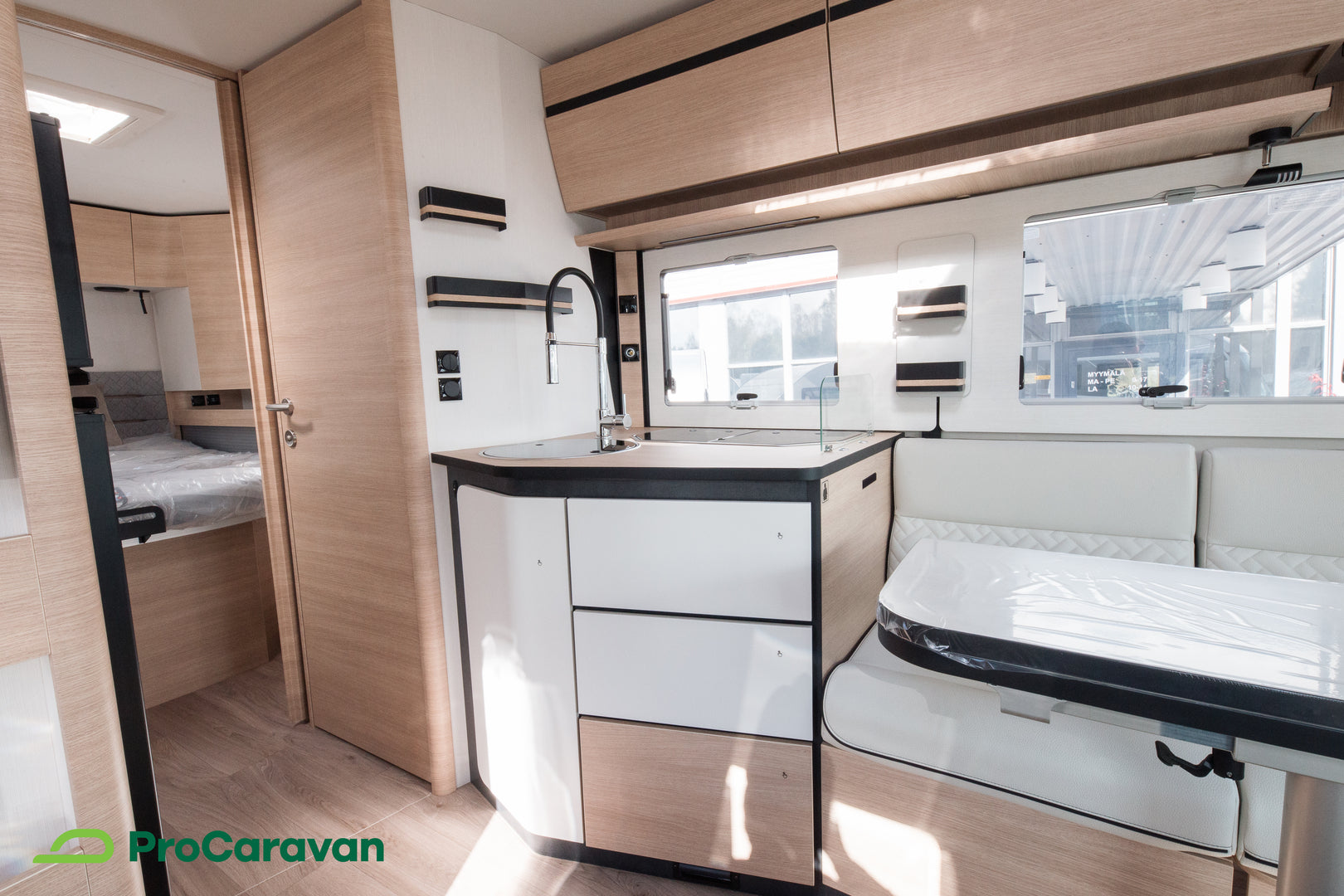 Moderni sisustus, laadukkaat materiaalit ja hyvin suunnitellut tilaratkaisut tekevät tästä matkailuautosta houkuttelevan vaihtoehdon vaativallekin käyttäjälle. Yksityiskohdat, kuten laadukas keinonahkasisustus, LED-tunnelmavalaistus sekä korkeussäädettävä vuode, viimeistelevät kokonaisuuden, jossa yhdistyvät mukavuus ja tyylikkyys.