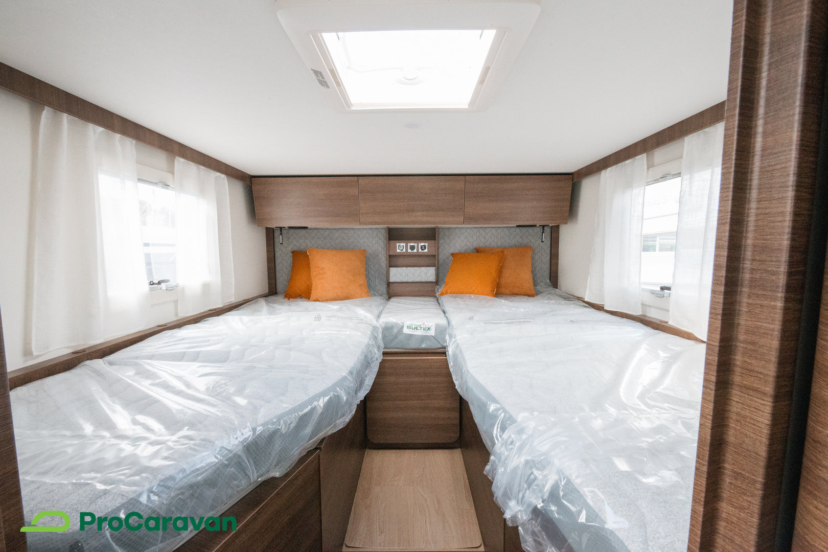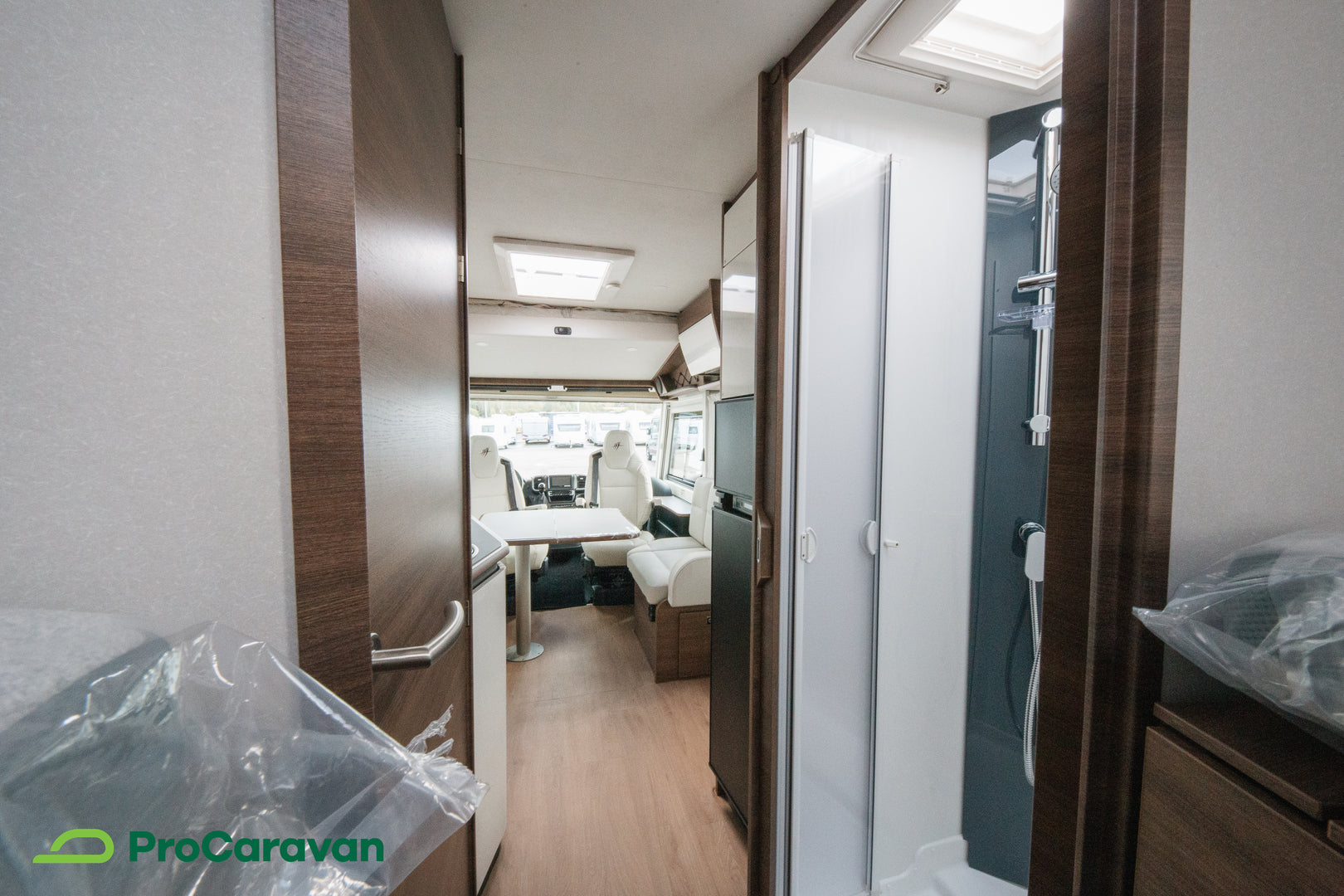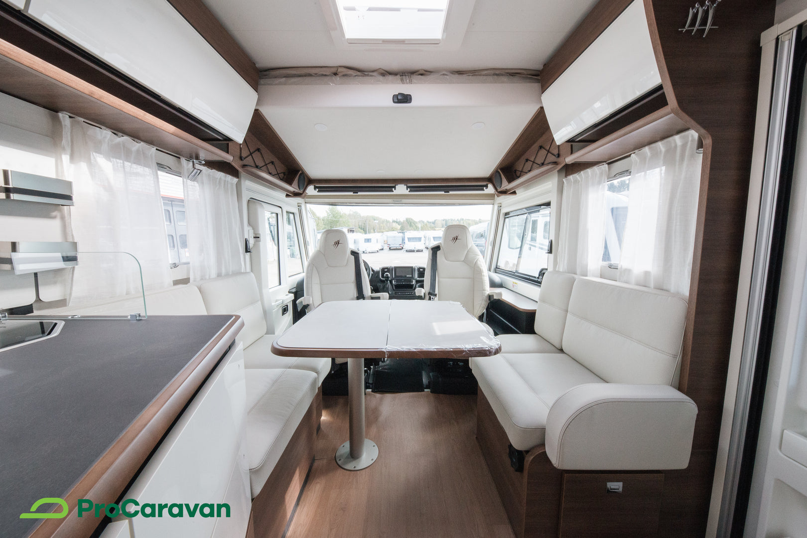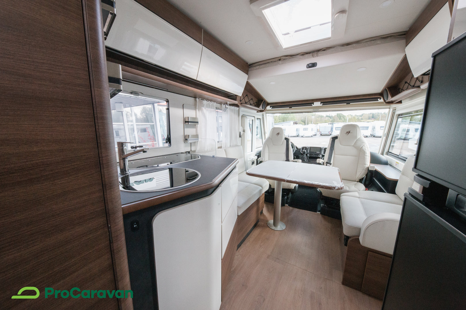 Ulkosuihku, tukijalat sekä sähköinen astinlauta lisäävät käytännöllisyyttä, ja matkustamon kokolattiamatto tuo ylellistä viimeistelyä. Eristysratkaisut ja laadukas rakenne takaavat toimivuuden pitkälle tulevaisuuteen.