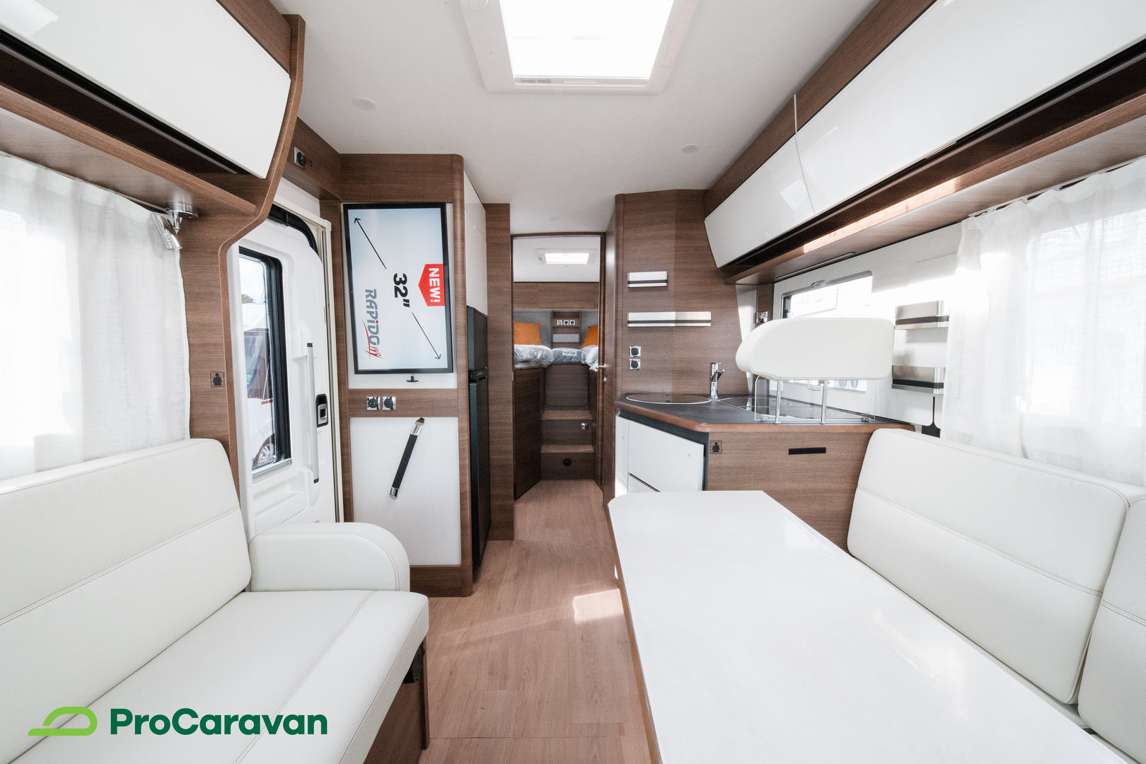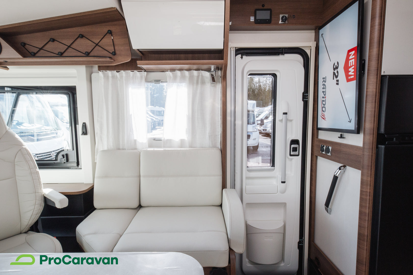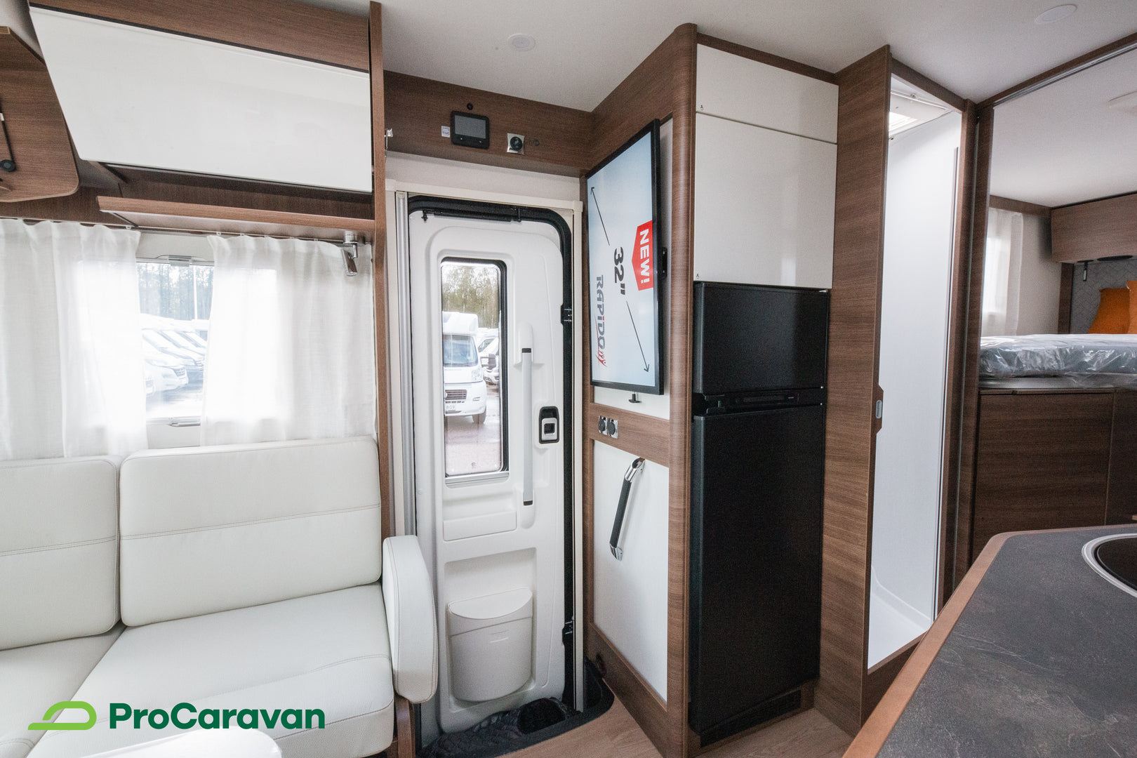 Rapido 866F on varusteltu yksityiskohtiin saakka. Hyttysverkko-ovi, TV-teline kahdella katselupaikalla sekä aurinkopaneelin esijohdotus ovat osa kokonaisuutta, joka tukee itsenäistä ja miellyttävää matkailua. Takatalli on valaistu ja siihen pääsee molemmilta puolilta, joten tavaroiden säilytys ja käyttö on sujuvaa.