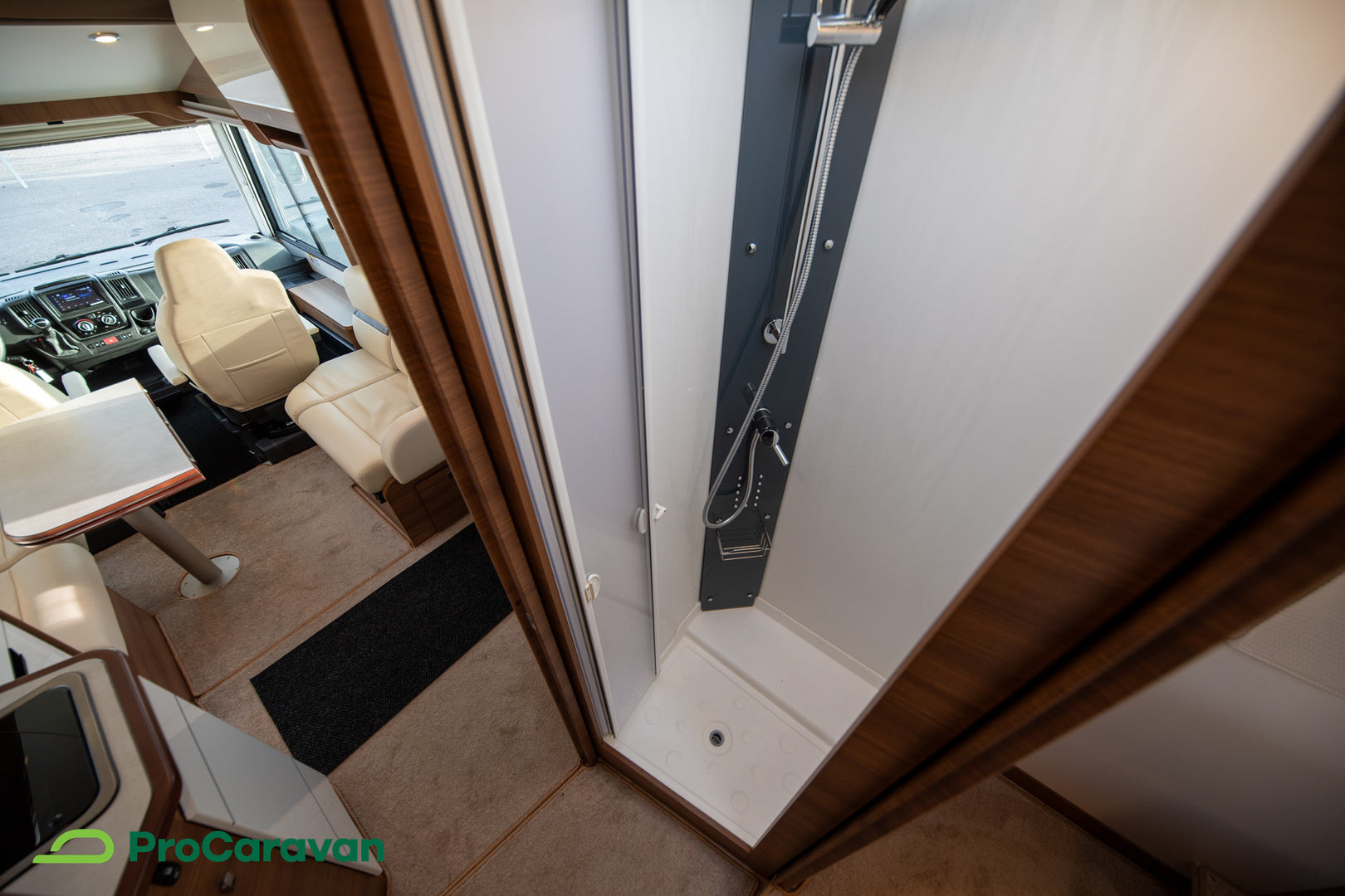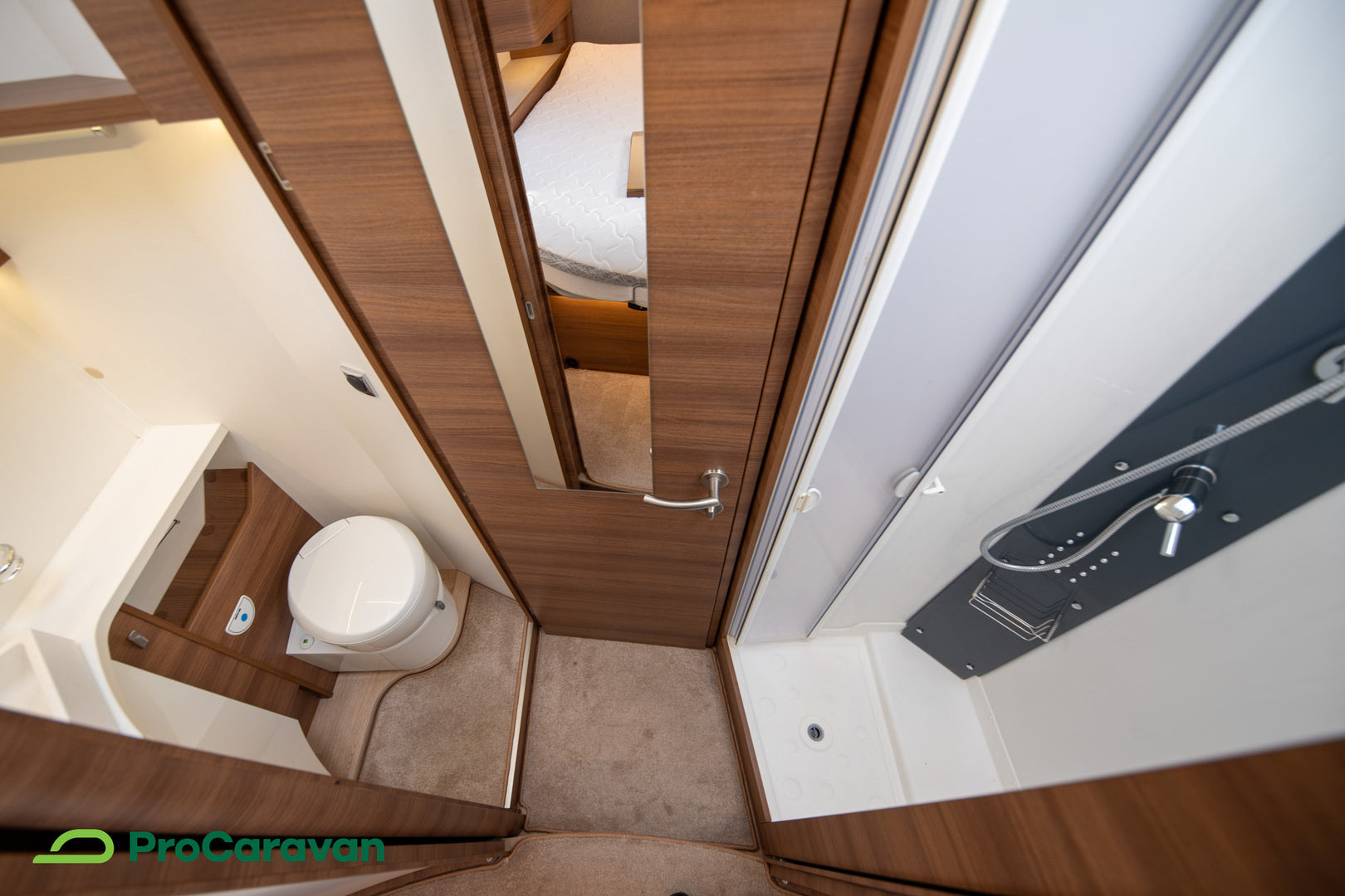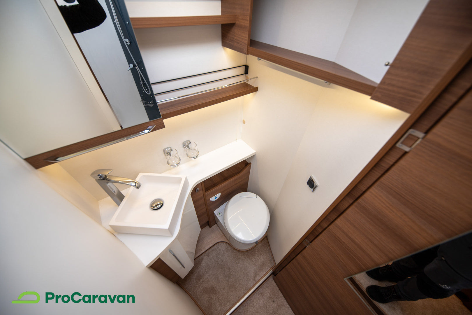 Tilava pöytäryhmä tarjoaa viihtyisän paikan yhdessäoloon, ja manuaalisesti alaslaskettava ylävuode sekä takana sijaitseva saarekevuode mahdollistavat mukavat yöpymisratkaisut. Erillinen suihkutila ja kasetti-WC tuovat lisää yksityisyyttä ja toimivuutta matkalla. Lattialämmitys, Truma-ilmakeskuslämmitys sekä sähköpatruuna pitävät olosuhteet tasaisen miellyttävinä vuoden ympäri.