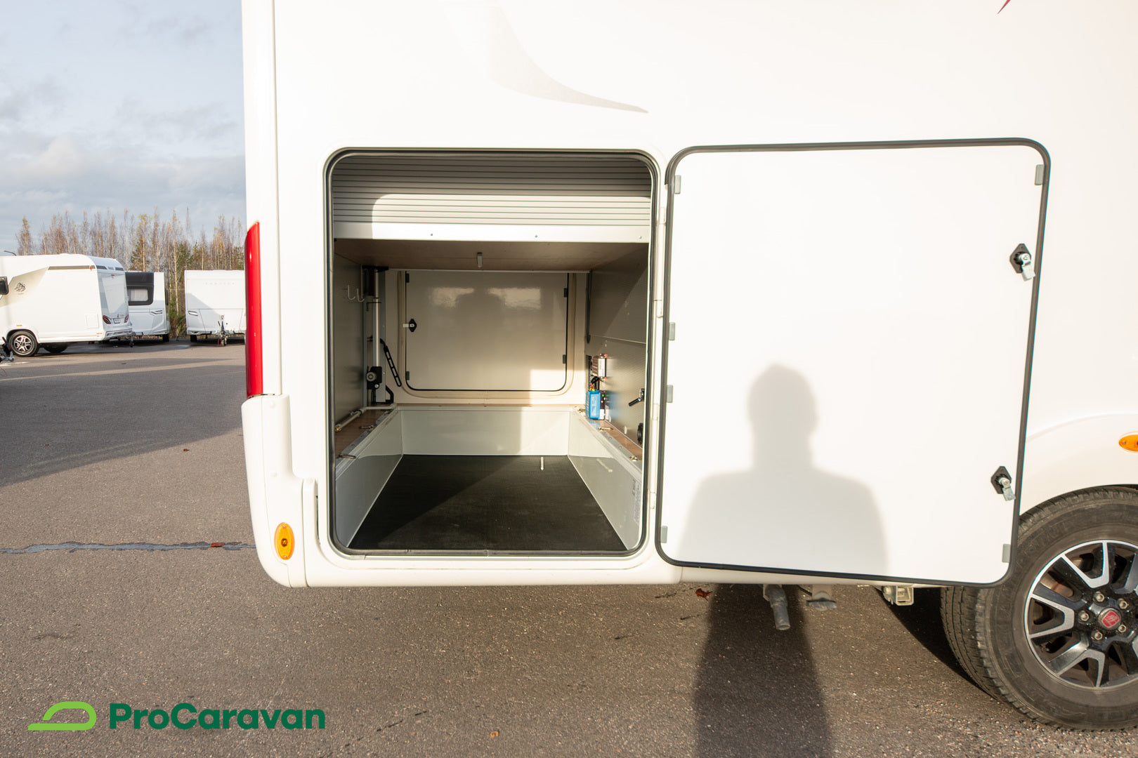 Sähkörappu, takatalli ja ulkosuihku tukevat käytännön arkea. Markiisi luo suojaisan tilan ulkona oleskeluun, ja sisätiloissa tunnelmaa luovat multimediasoitin, asuinosan kaiuttimet sekä kattoluukku. Nahkainen ohjauspyörä, alumiinivanteet ja tyylikkäät yksityiskohdat viimeistelevät kokonaisuuden laadukkaaksi.