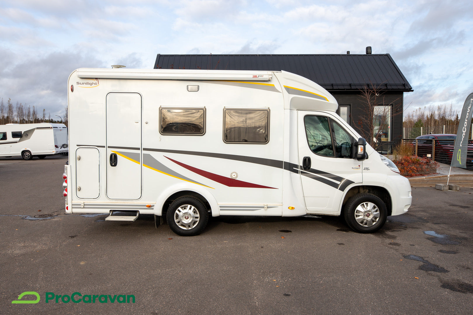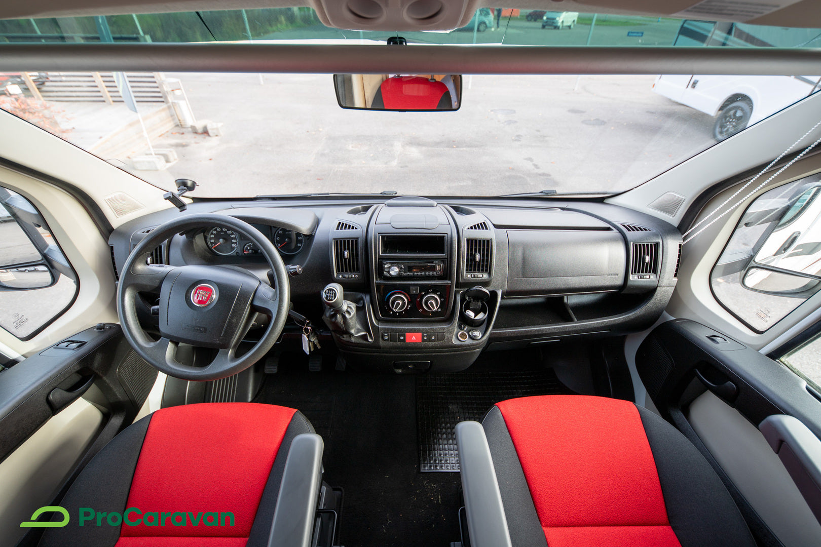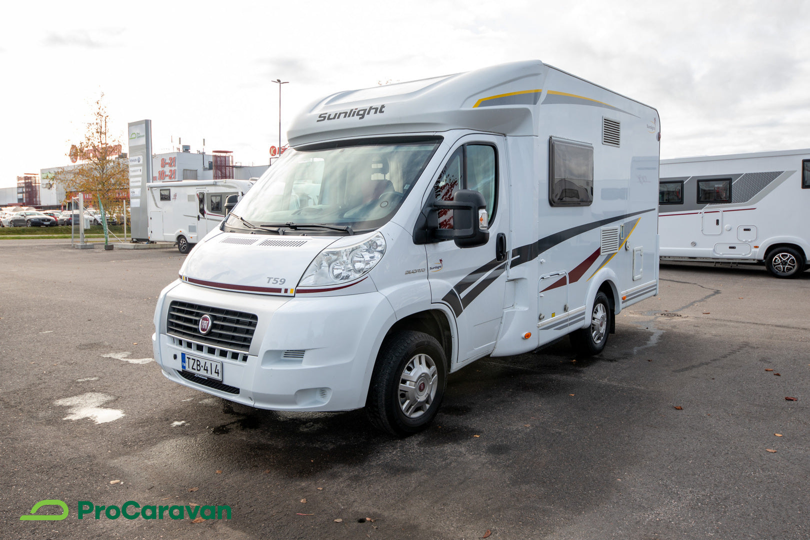 Sunlight T 59 tarjoaa loistavan yhdistelmän ajomukavuutta ja älykkäitä sisätilaratkaisuja. Fiatin 2,3-litrainen moottori ja 130 hevosvoimaa varmistavat kevyen etenemisen, ja ajotietokone, vakionopeudensäädin sekä manuaalinen ilmastointi tukevat rentoa matkantekoa. Kääntyvät ohjaamon istuimet liittävät ohjaamon osaksi oleskelutilaa, ja sähkökäyttöiset ikkunat lisäävät käyttömukavuutta.