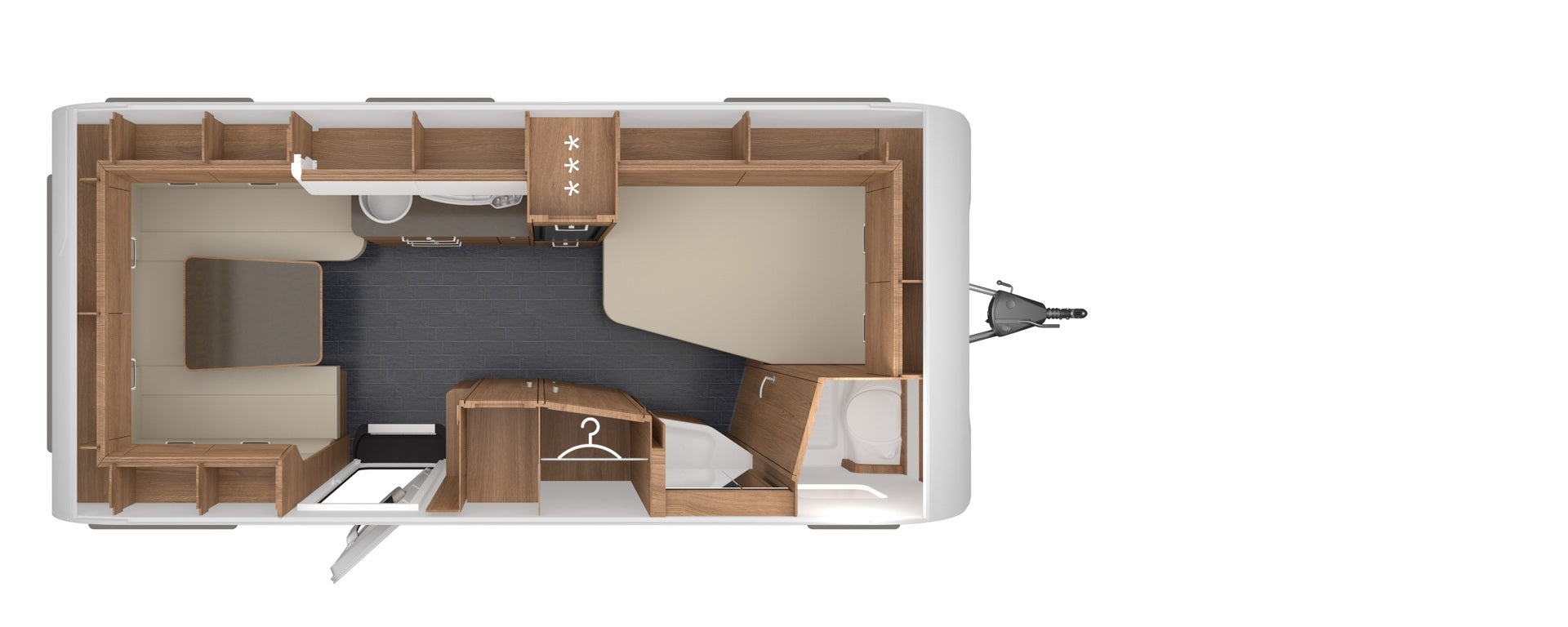 DA VINCI 490 TD 2,3 yhdistää TABBERTin laadun, ajattoman muotoilun ja huolellisesti suunnitellun pohjaratkaisun, joka palvelee täydellisesti neljän hengen tarpeita. 730 cm kokonaispituuteen mahtuu kaksi erillistä nukkumatilaa – edessä kiinteä parivuode ja takana muunneltava vuode U-istuinryhmästä. Viilentävällä geelialustalla varustettu Comfort-vuode ja lautasjousitettu sälepohja tarjoavat erinomaisen nukkumismukavuuden.