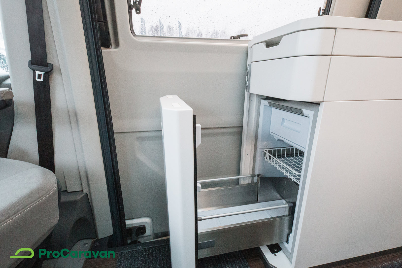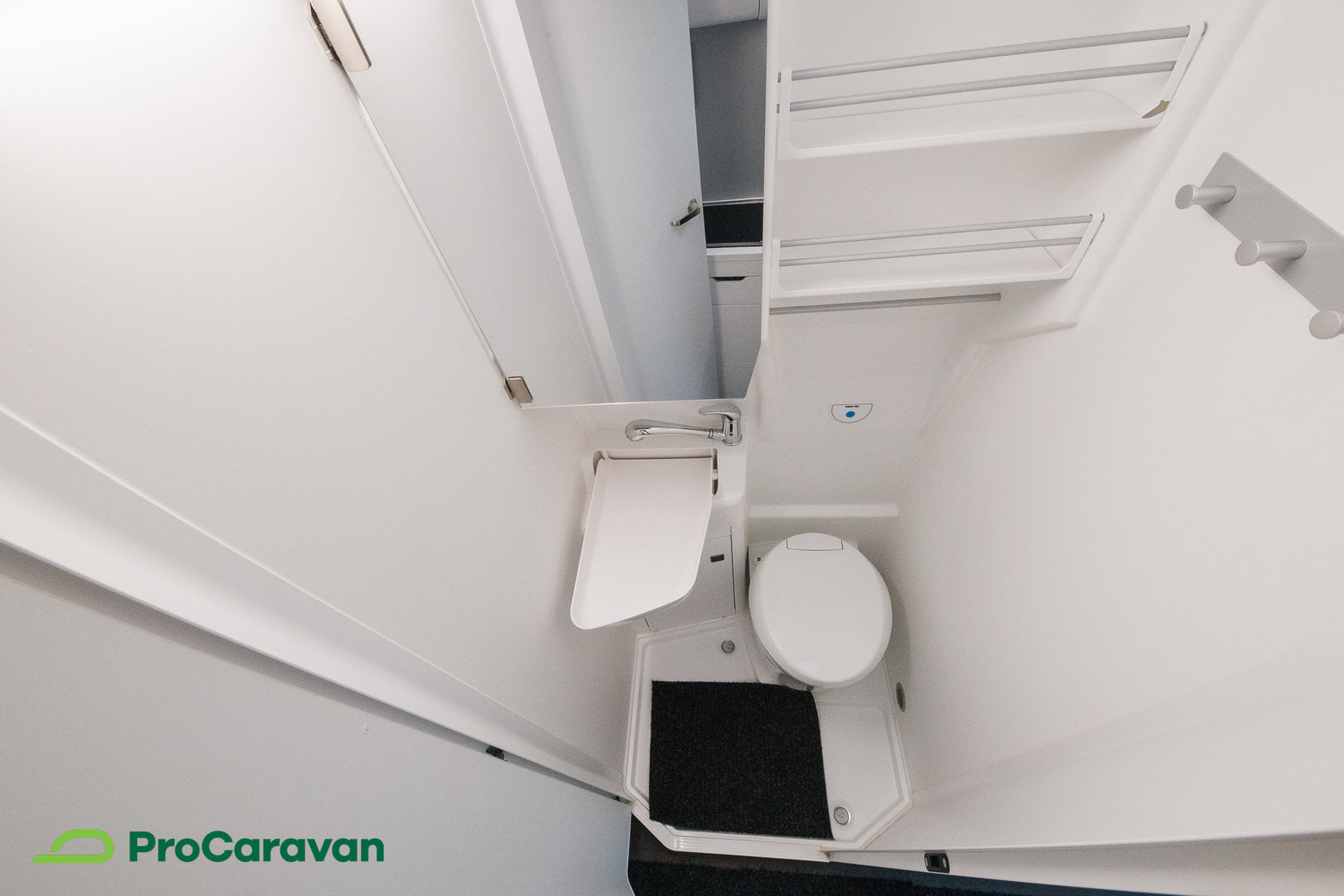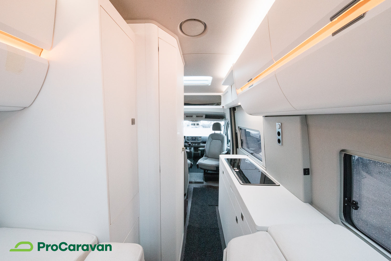 Lämmityksestä vastaa Truma-ilmakeskuslämmitys ja sähköpatruuna, jotka pitävät sisätilat miellyttävinä säästä riippumatta. Parivuode tarjoaa levolliset yöunet, ja liesi, jääkaappi sekä pakastelokero mahdollistavat monipuolisen ruoanlaiton missä tahansa. Matkan aikana peseytyminen onnistuu helposti kasetti-WC:n ja pesualtaan avulla.