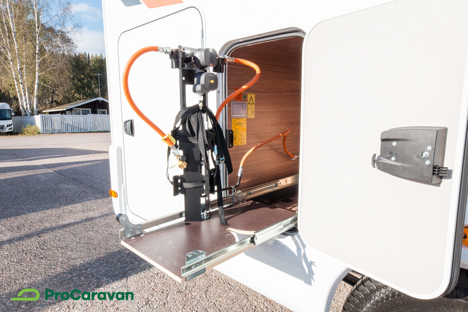 Ulosvedettävä kaasupulloteline enintään 2 x 11 kg kaasupulloille (ei mahdollinen matalan vuoteen kanssa) 410 €